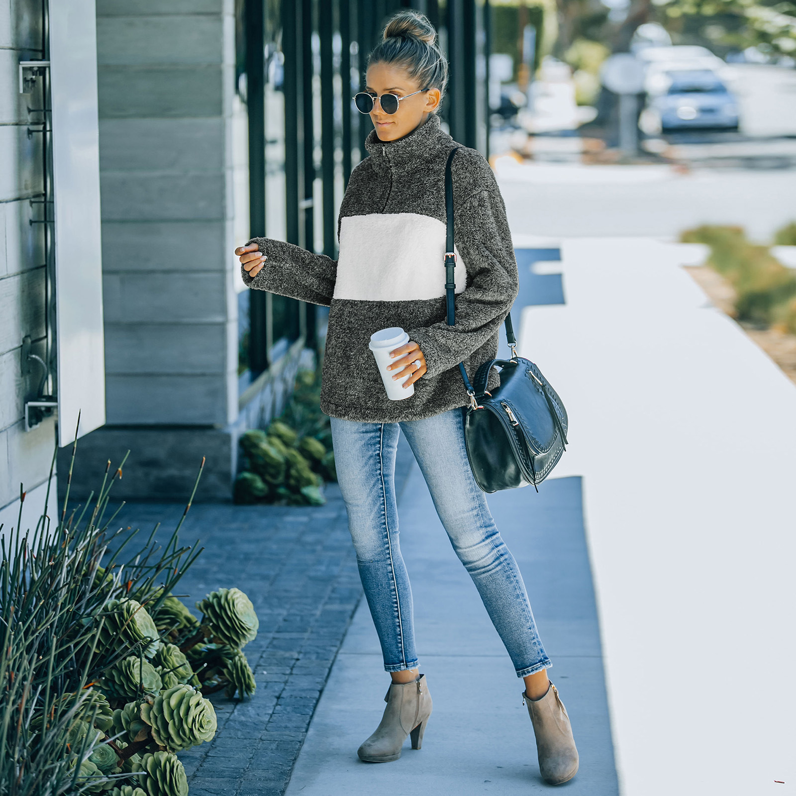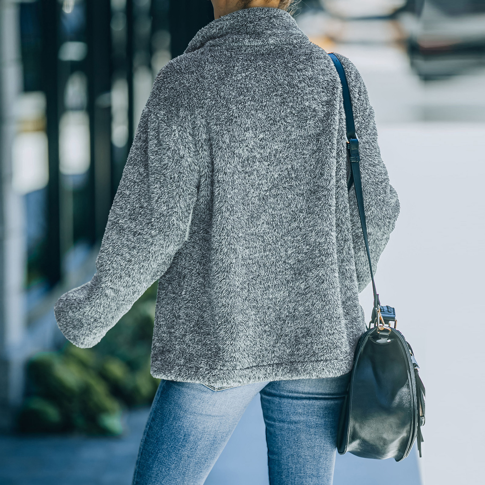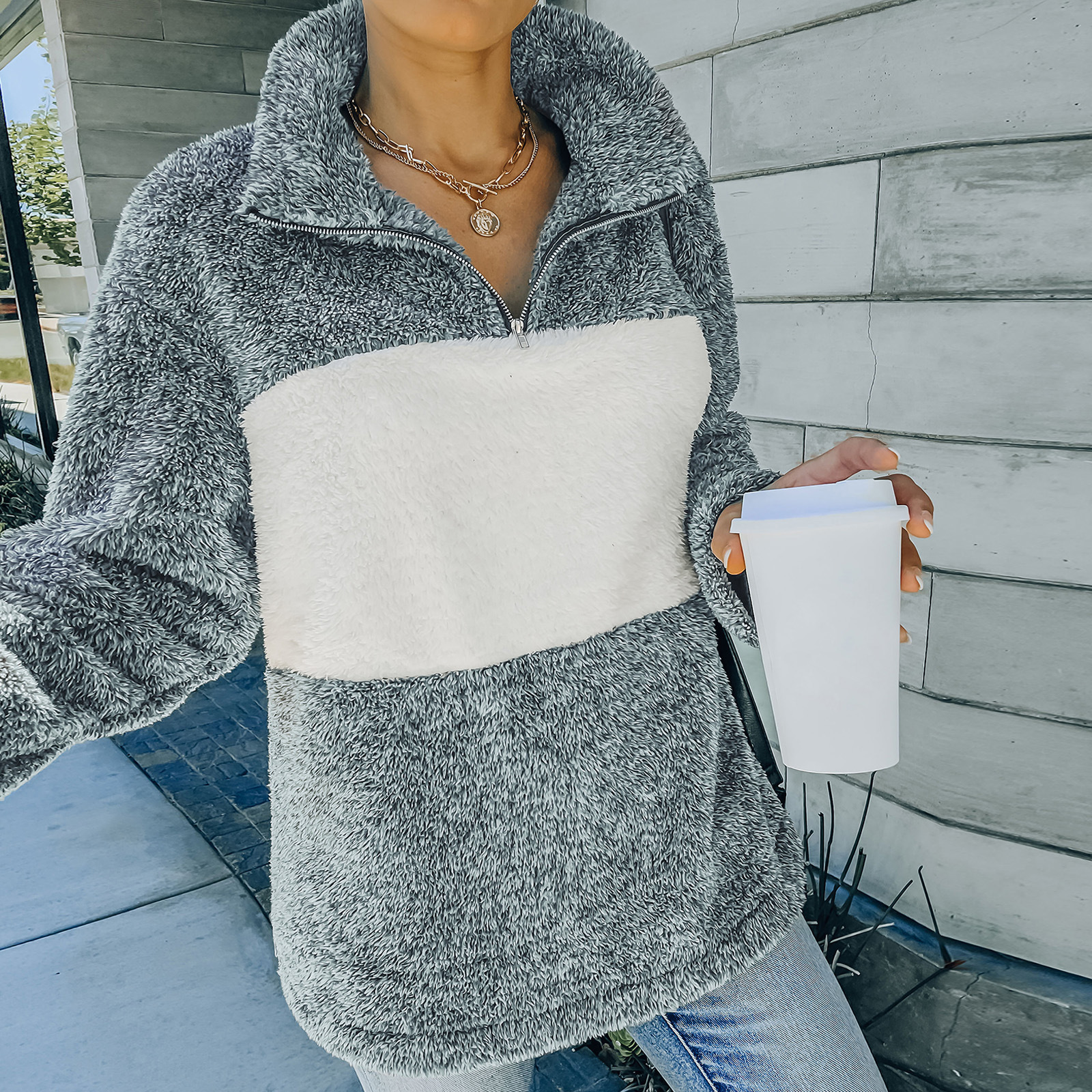 Features: Loose, contrast color, lapel