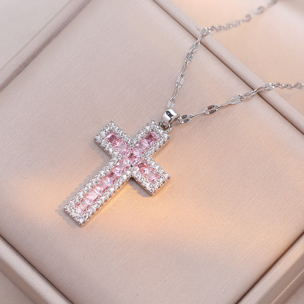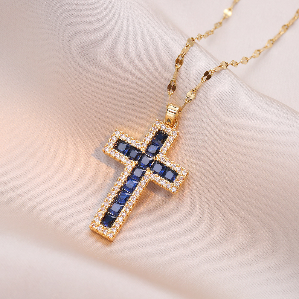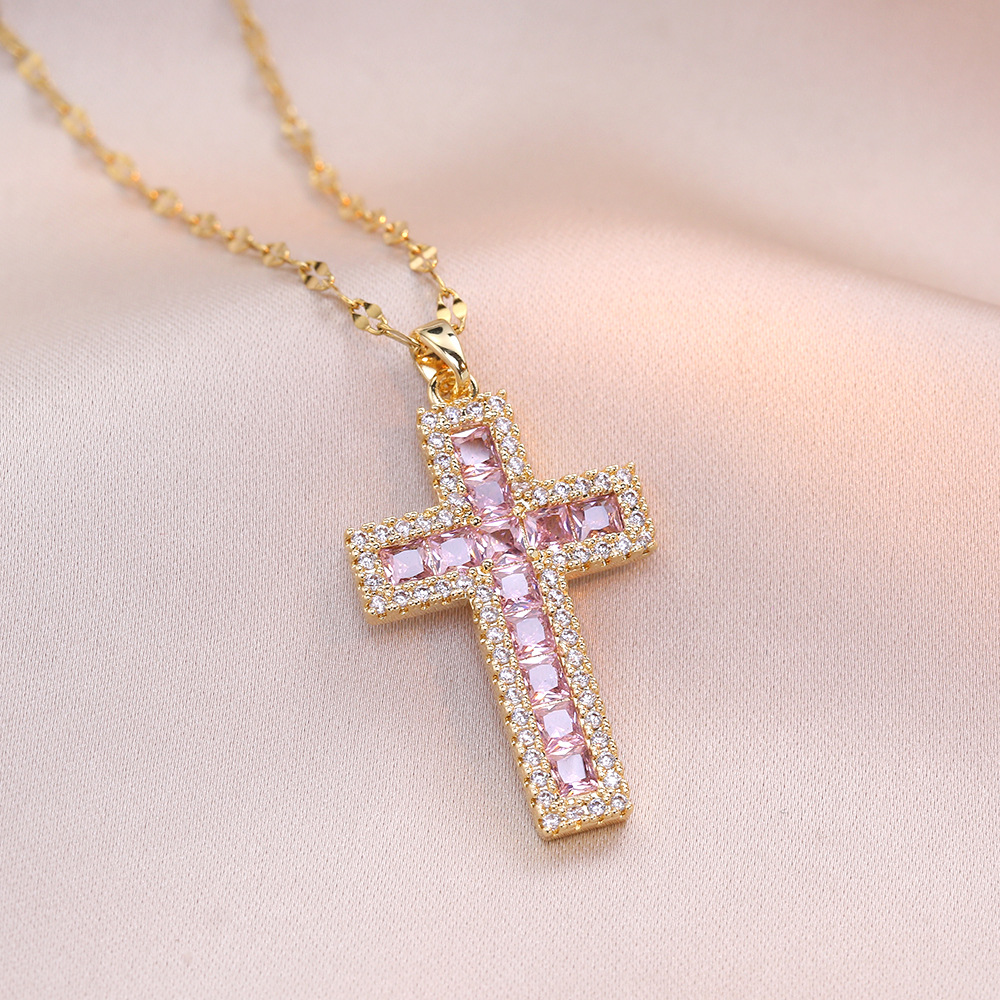 Color: X1351 gold pink cross necklace, X1352 blue cross necklace, X1353 Steel pink cross necklace