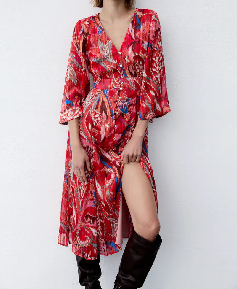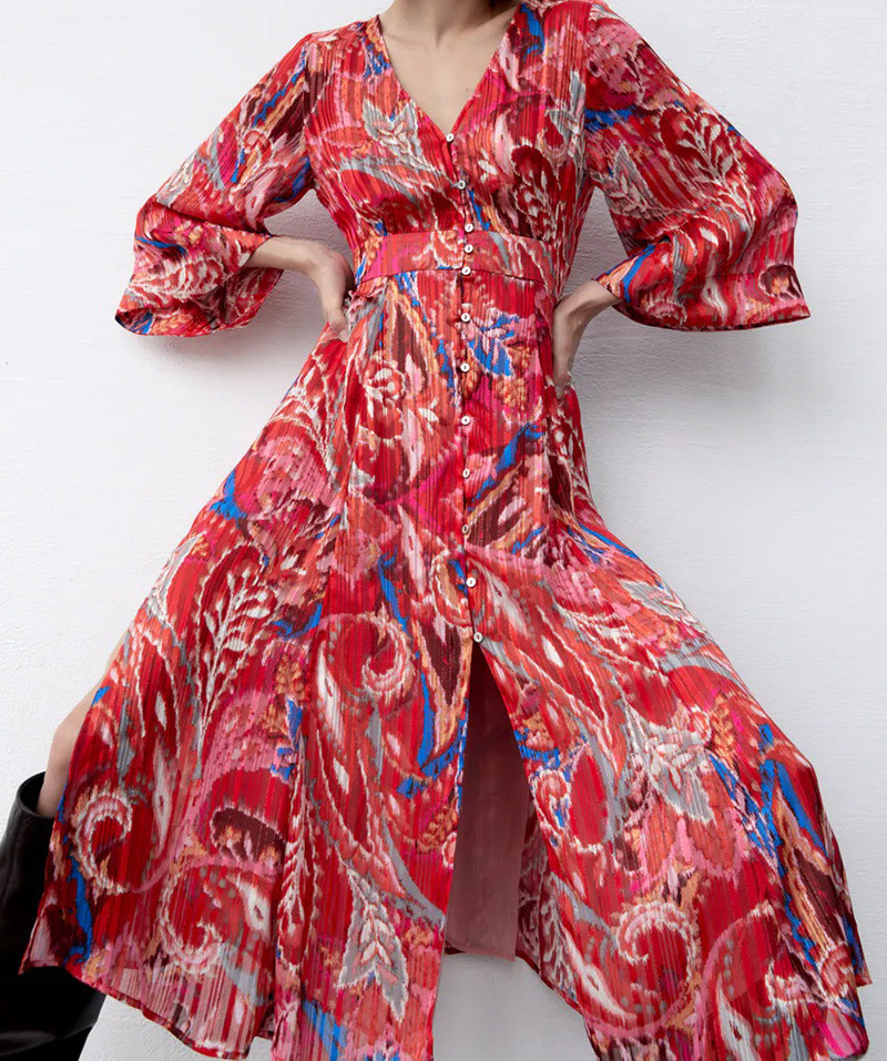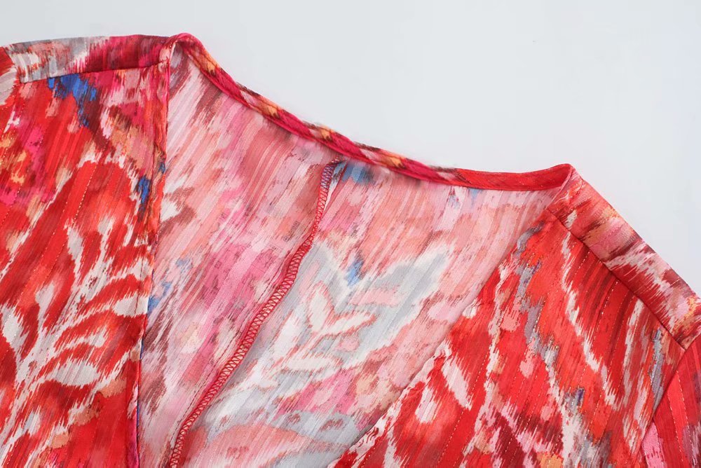 Color: Red-breasted printed skirt