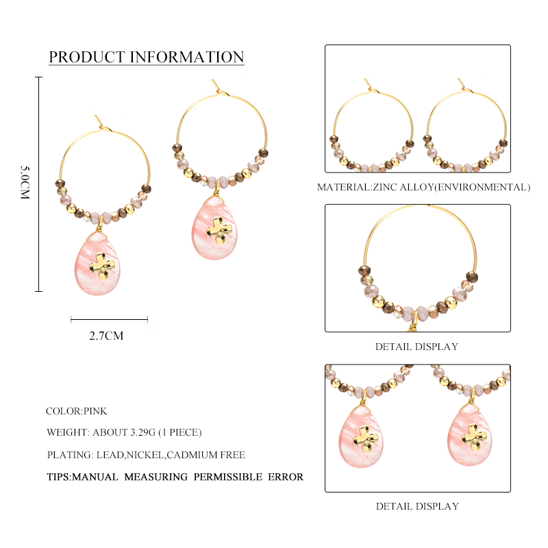 Women Fashion Natural Stone Hoop Earrings With Pink Waterdrop Stone