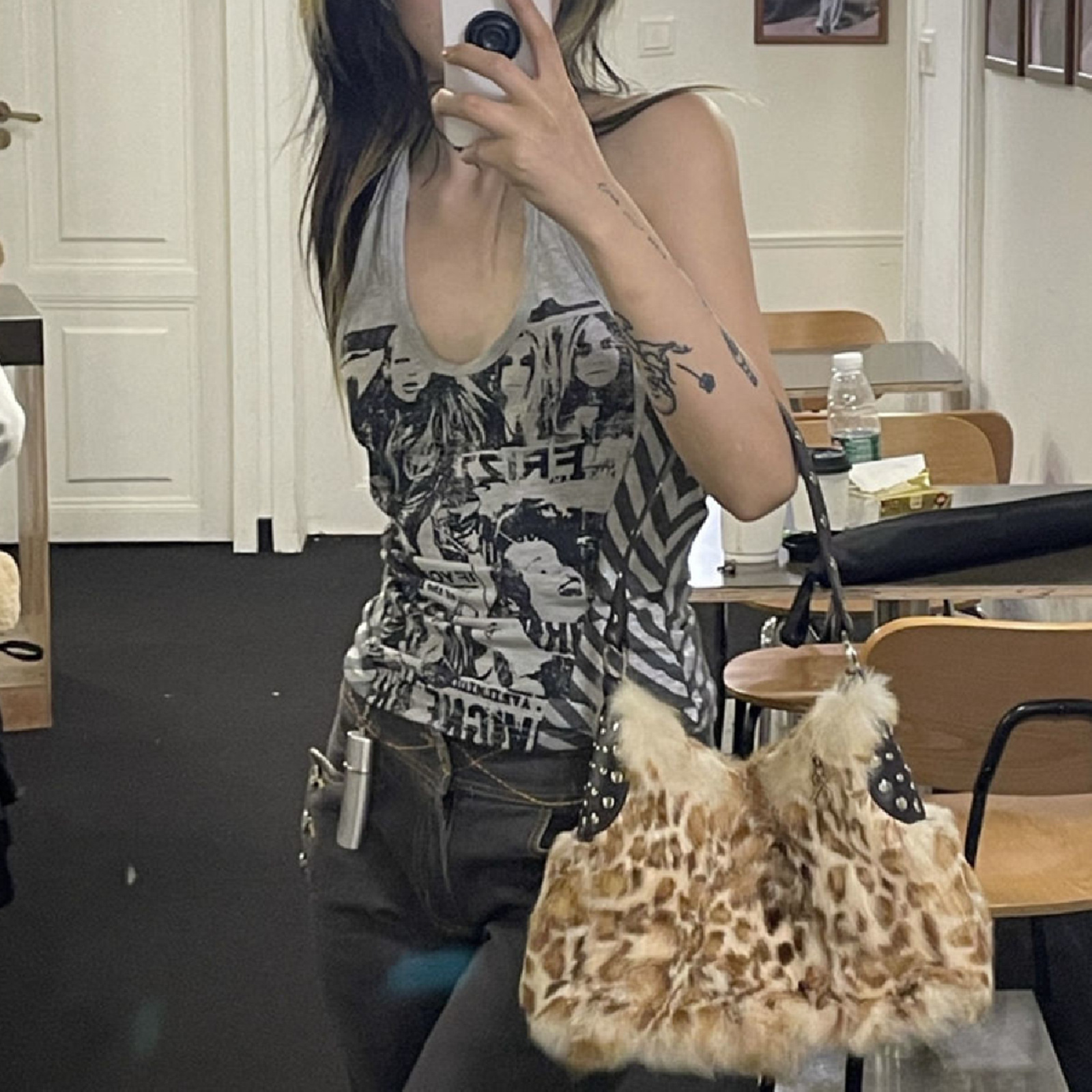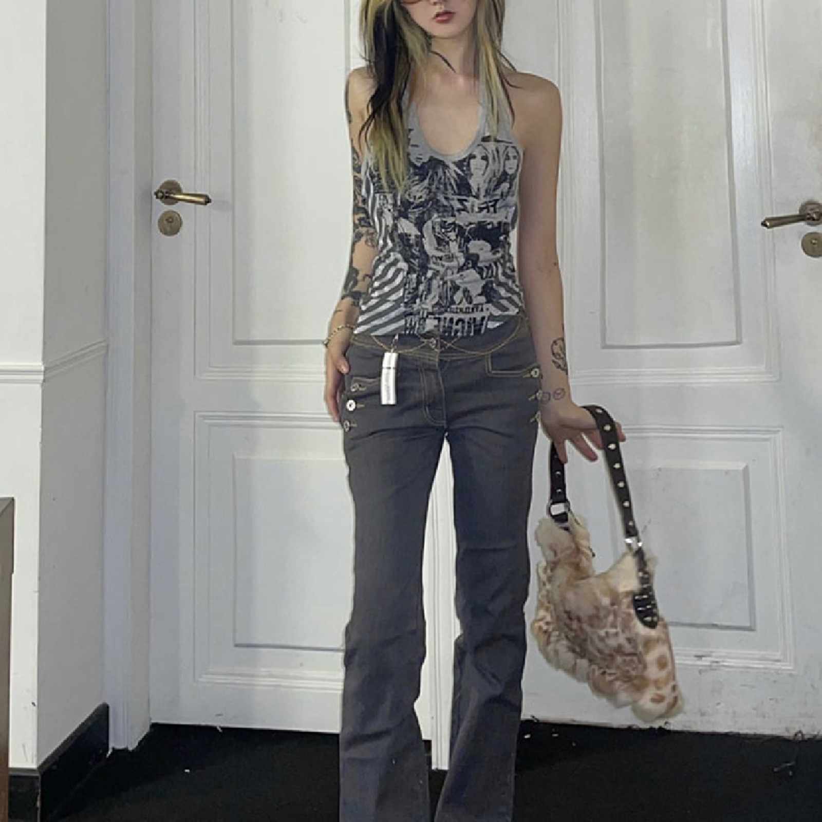 Product information:Style: hanging neckPattern: printingFashion element: printingFabric name: polyesterColor: graySize information:Size: S, M, L, XLPacking list:Top X1PCS