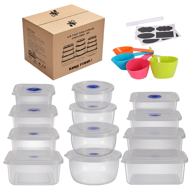 Specification: transparent crisper (12-piece set) with measuring spoon mark mark marking pen
