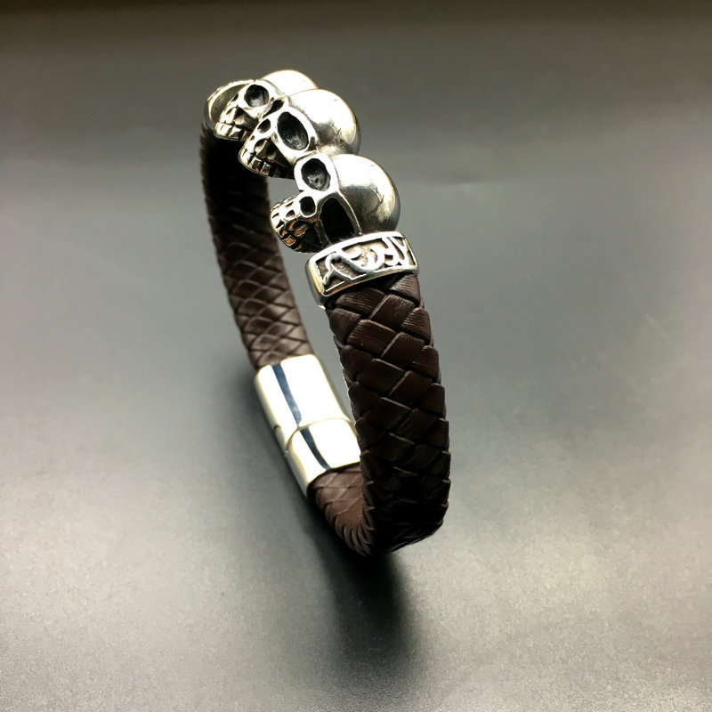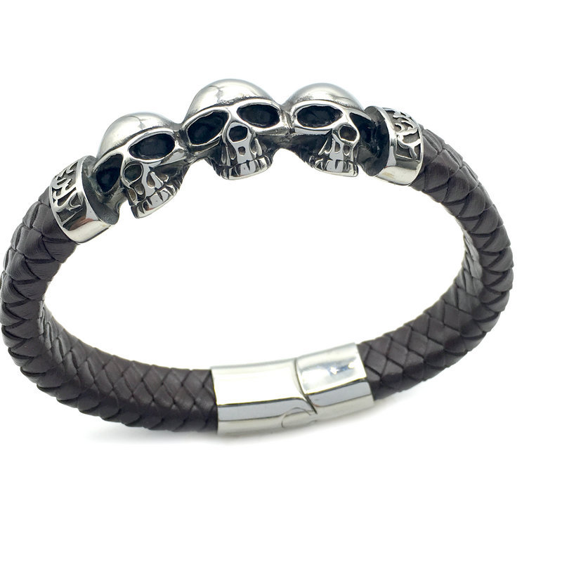 Hip Hop Rock Men's Bracelet Skull Black Brown