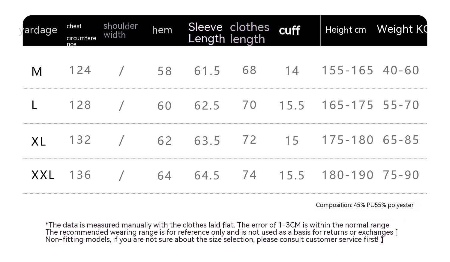 1. Asian sizes are 1 to 2 sizes smaller than European and American people. Choose the larger size if your size between two sizes. Please allow 2-3cm differences due to manual measurement. 2. Please check the size chart carefully before you buy the item, if you don't know how to choose size, please contact our customer service. 3.As you know, the different computers display colors differently, the color of the actual item may vary slightly from the following images.