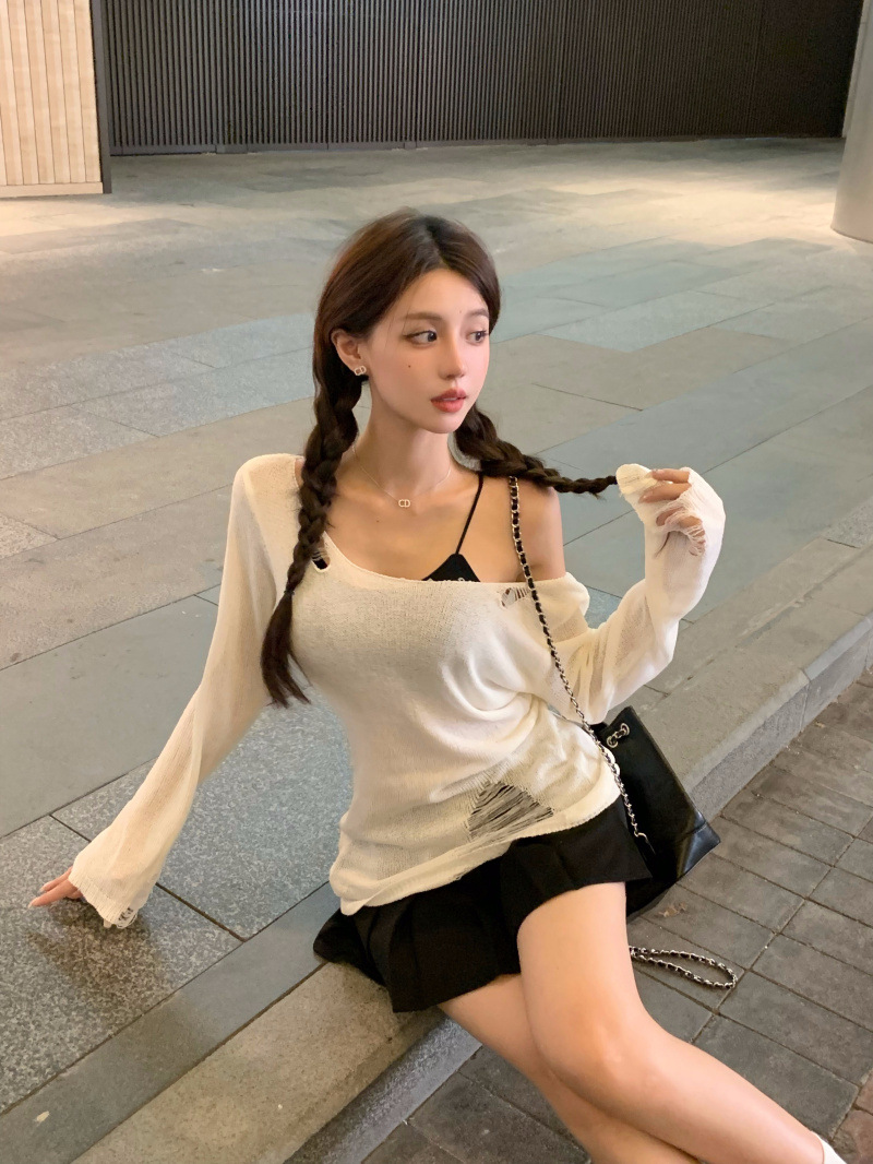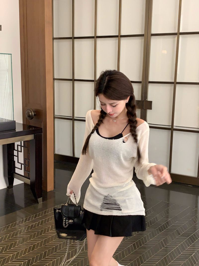Product information:Color: knitted gray, knitted Milky White Sleeve type: shirt sleeve Size: S,M,L, free size Wearing style: pullover Version: tight Sleeve length: long sleeve Style: pullover