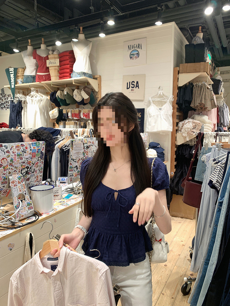 Product information: Fabric name: Polyester (polyester fiber) Color: white, dark blue Sleeve type: puff sleeve Main composite material: Polyester (polyester fiber) Size: S,M,L,XL Long Sleeve: short sleeve Color: solid color Style: urban style
