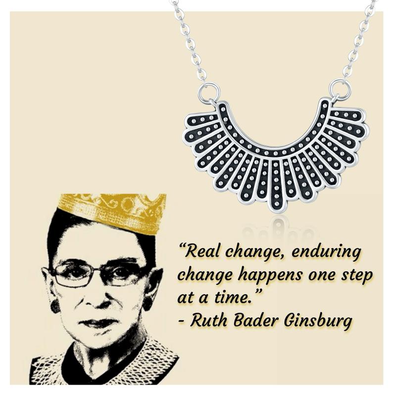 The dissenting collar necklace was inspired by the iconic collar worn by Judge Ginsberg on the day he opposed the Supreme Court ruling. RBG is decorated with the iconic "against" coat, and lace is worn in an understated manner. Her collar became a symbol of her strong feminist ideals.
