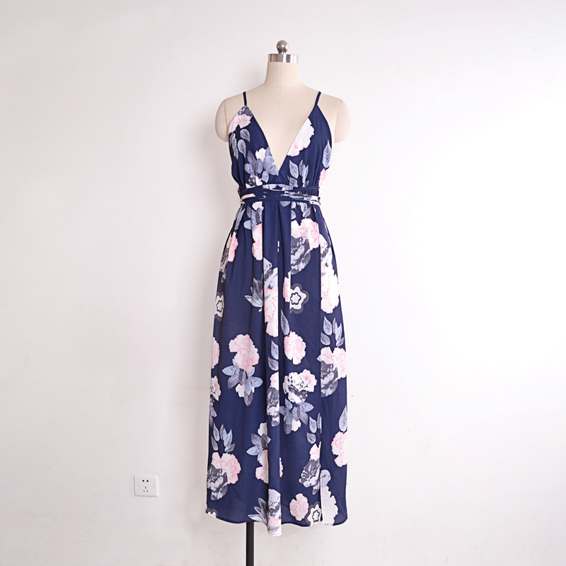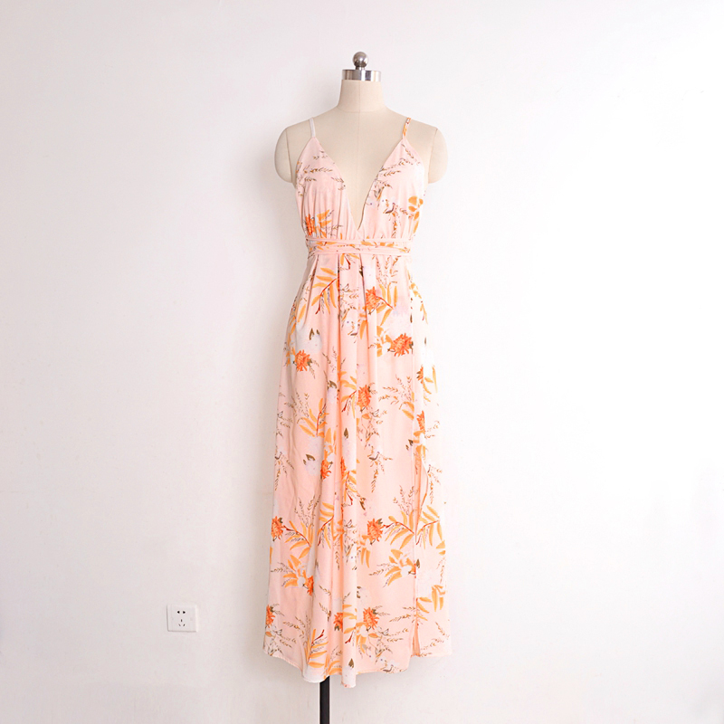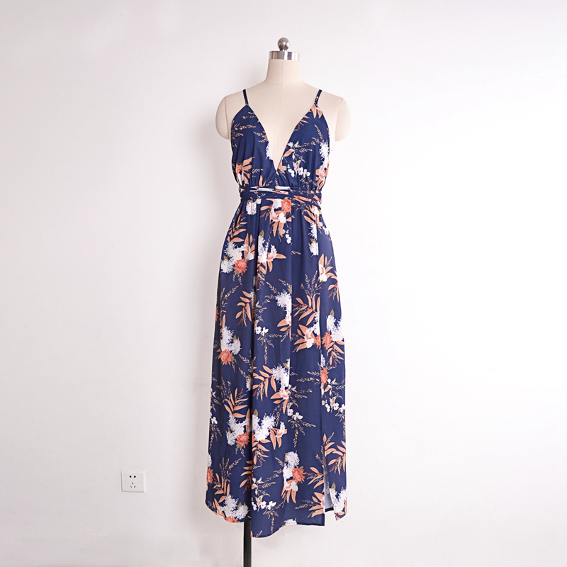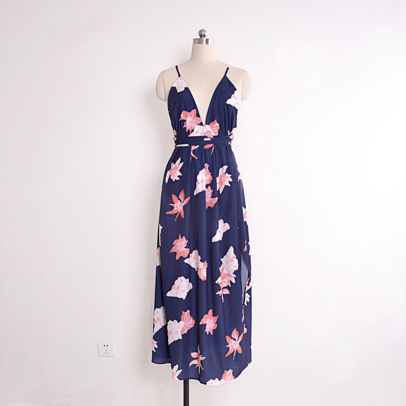 USA SIZE Sexy V-neck halter dress Fashion printed bandage beach dress