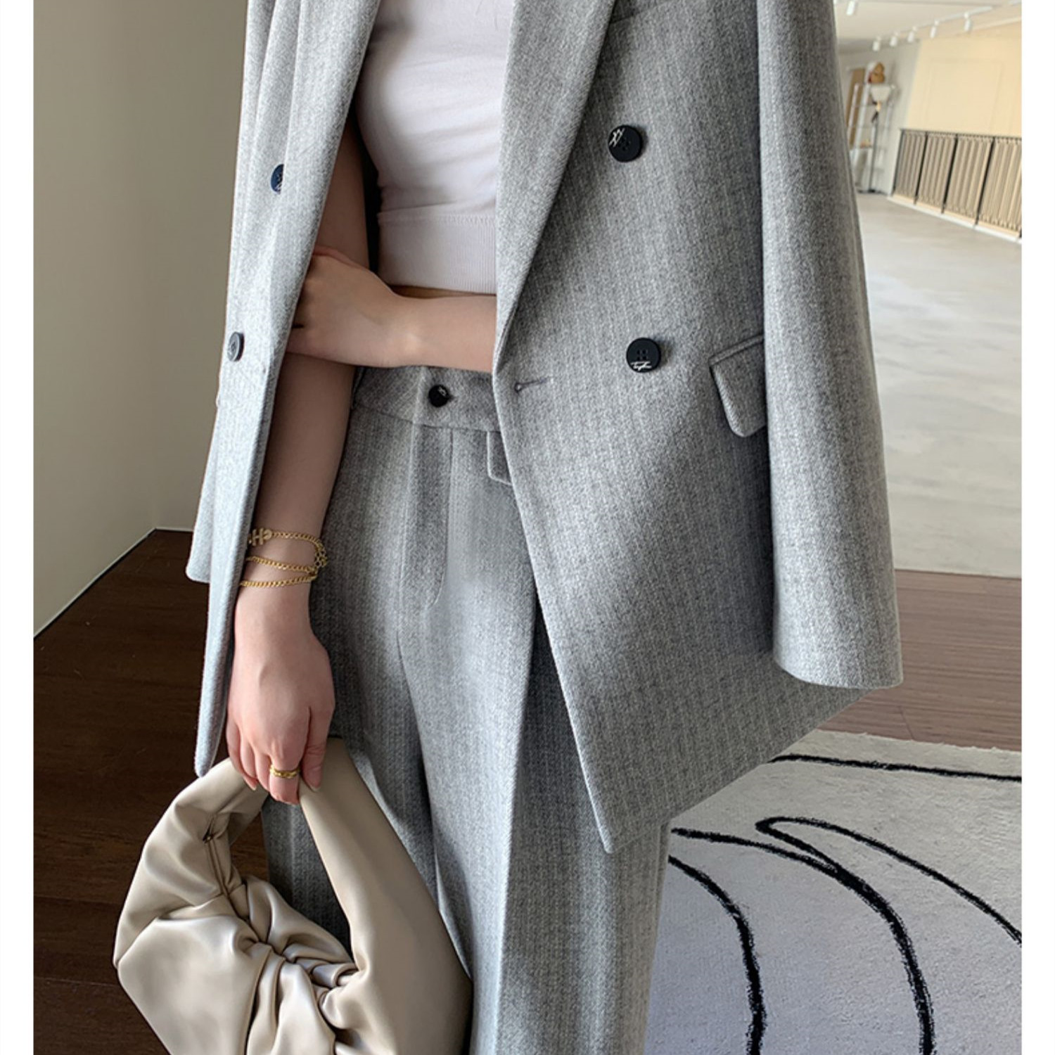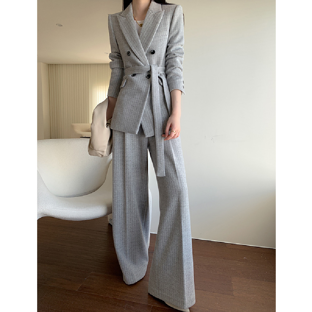 Color classification: gray and white striped suit (coat+wide leg pants) gray and white striped coat (single suit)