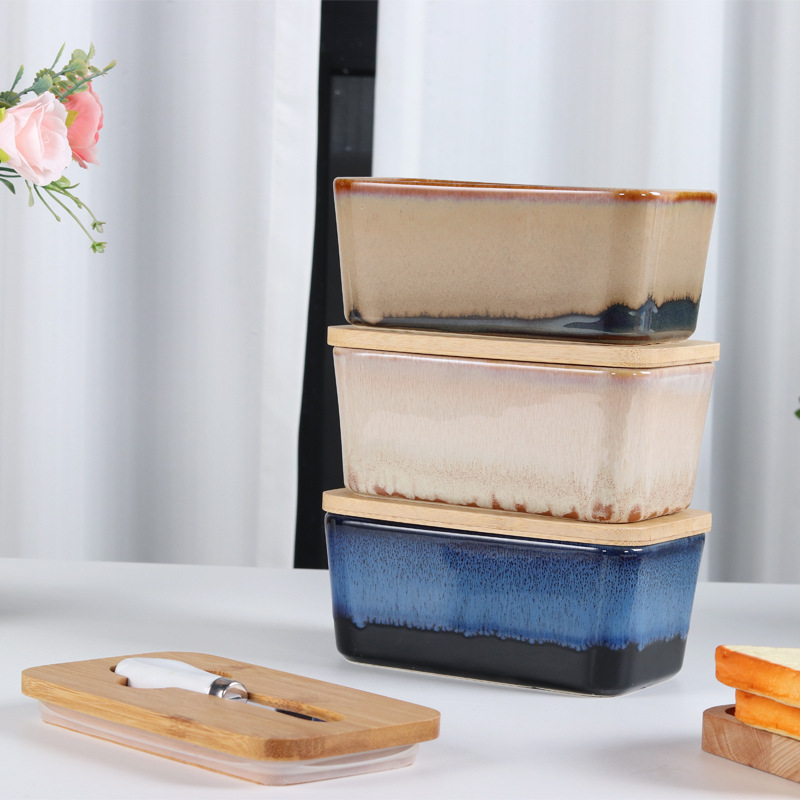 Product information:Specifications: blue, brown, camel Material: Ceramic Style: single butterboat, full set (with wooden lid knives) Style: Kiln roast, kiln roast Size: 16.8*10 * 6.5cm
