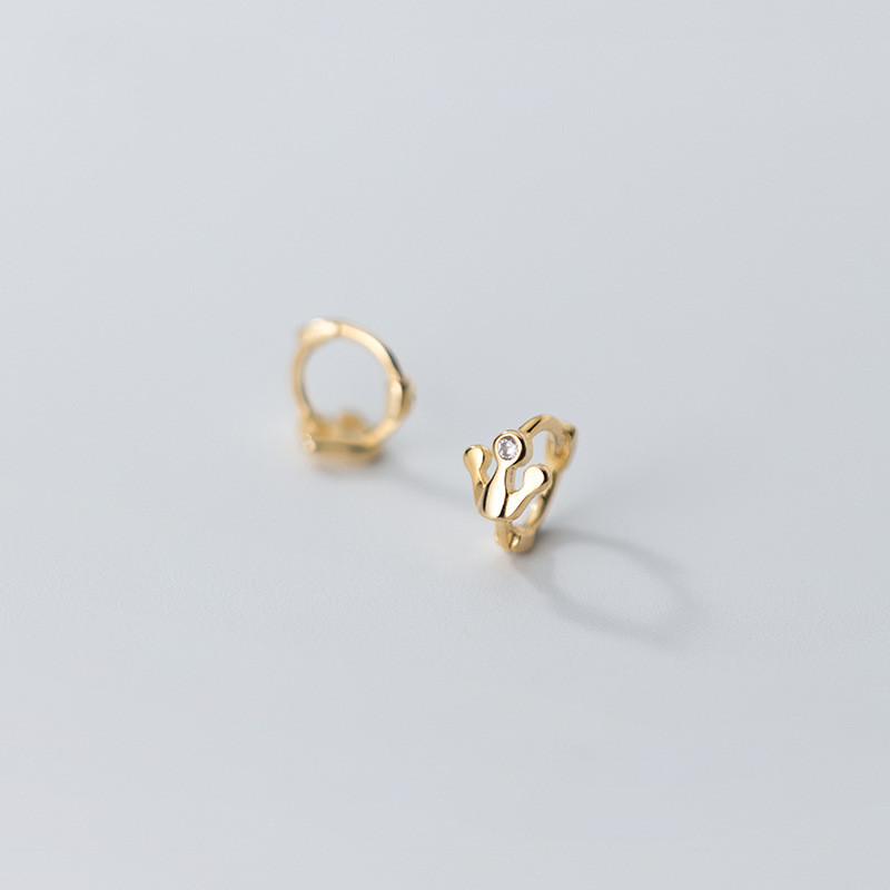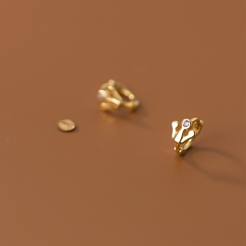 S925 White Fungus Buckle Women Simple Diamond Crown Earrings