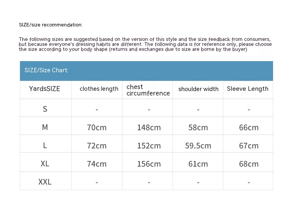 1. Asian sizes are 1 to 2 sizes smaller than European and American people. Choose the larger size if your size between two sizes. Please allow 2-3cm differences due to manual measurement. 2. Please check the size chart carefully before you buy the item, if you don't know how to choose size, please contact our customer service. 3.As you know, the different computers display colors differently, the color of the actual item may vary slightly from the following images.