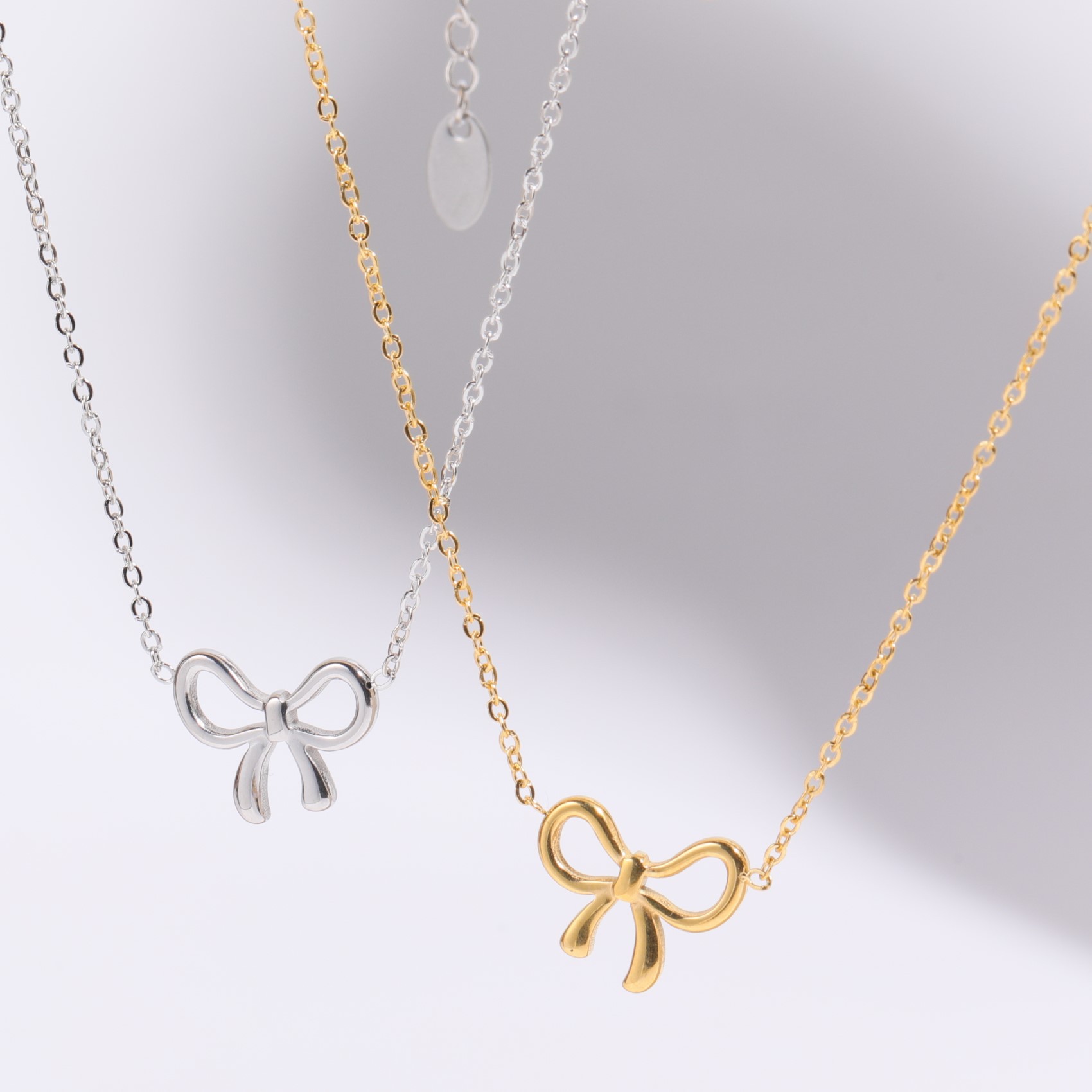 Product information:Treatment Process: Electroplating Color: gold, steel Applicable population: Female Pendant material: titanium steel Chain style: O-ring chain Material: titanium steel Size: 40+5cm 14mm