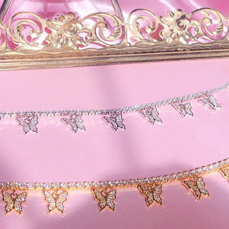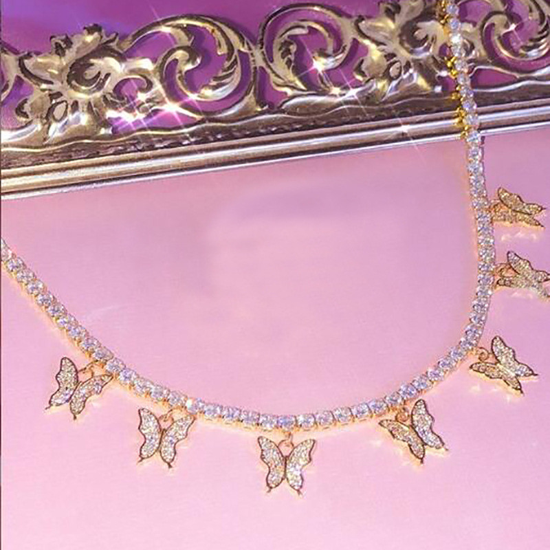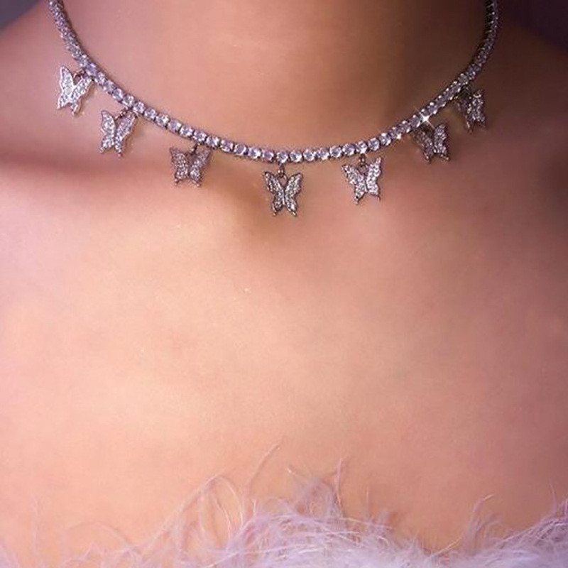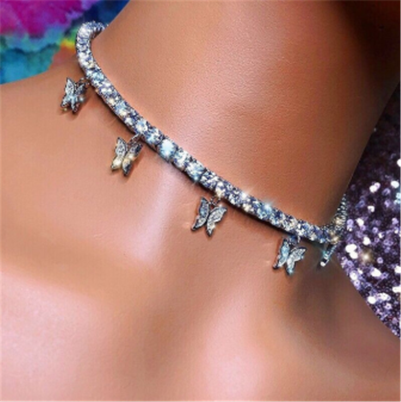 Fashionable Women's Light Luxury 7 Butterfly Necklace Claw Diamond Shiny