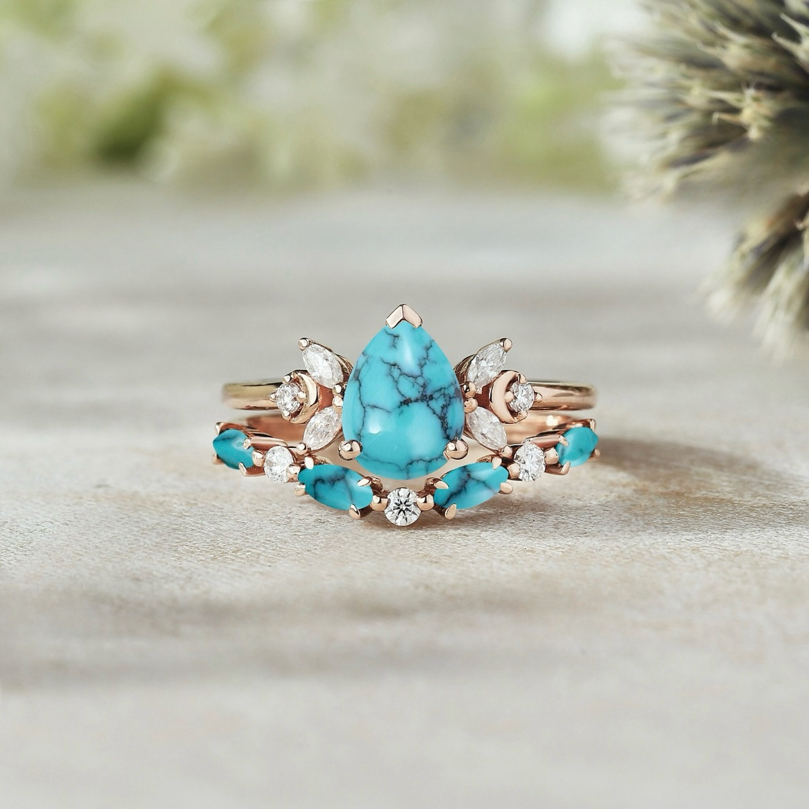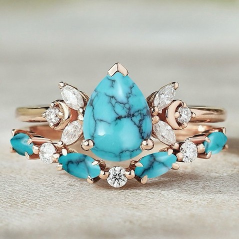 Product information:Treatment Process: Electroplating Color: turquoise couple ring Size: no.6, no.7, no.8, no.9, no.10 Material: Alloy Shape: Flower Popular elements: Ring Style: ins style