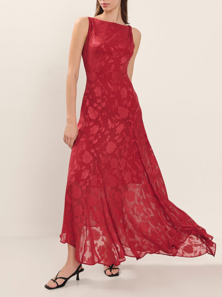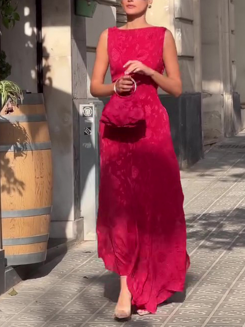 Elegant Sleeveless Jacquard Irregular Hem Dress