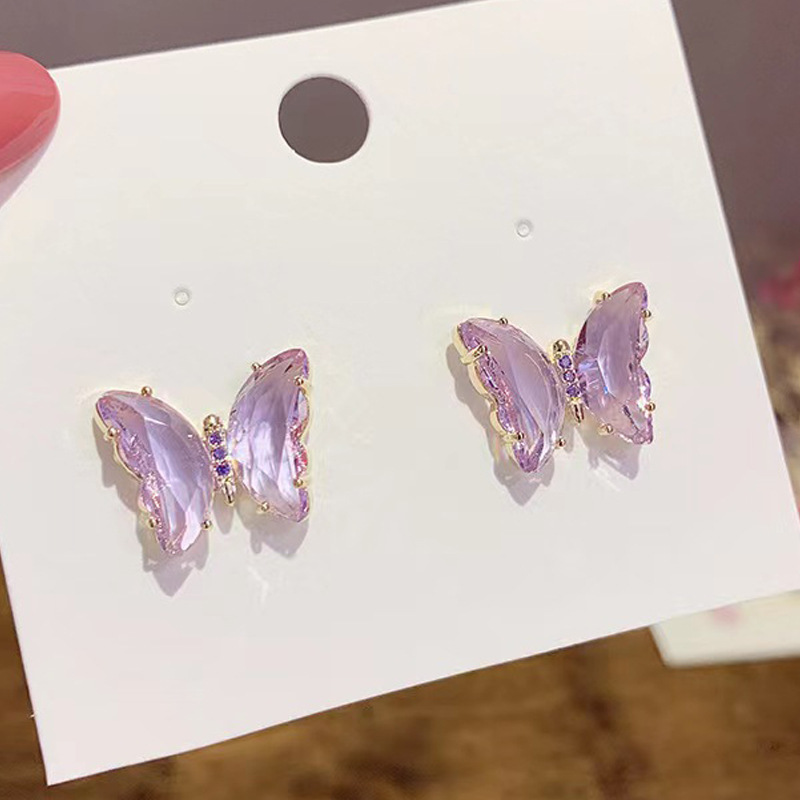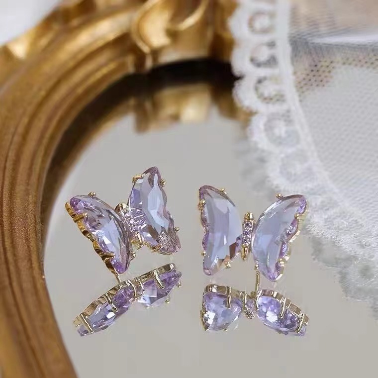 Material: AlloyTreatment process: electroplatingShape: bow, insectColor: Purple ButterflyPackage Contents:Earrings X1pair