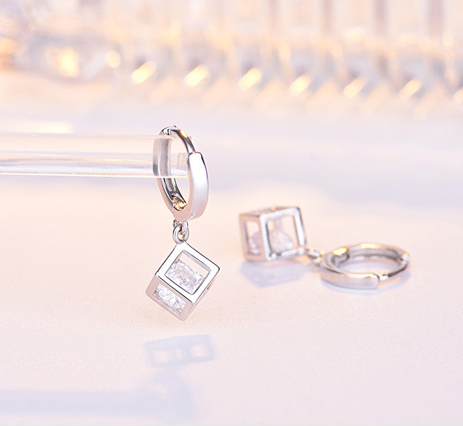 Rubik's cube love window cube sugar earrings