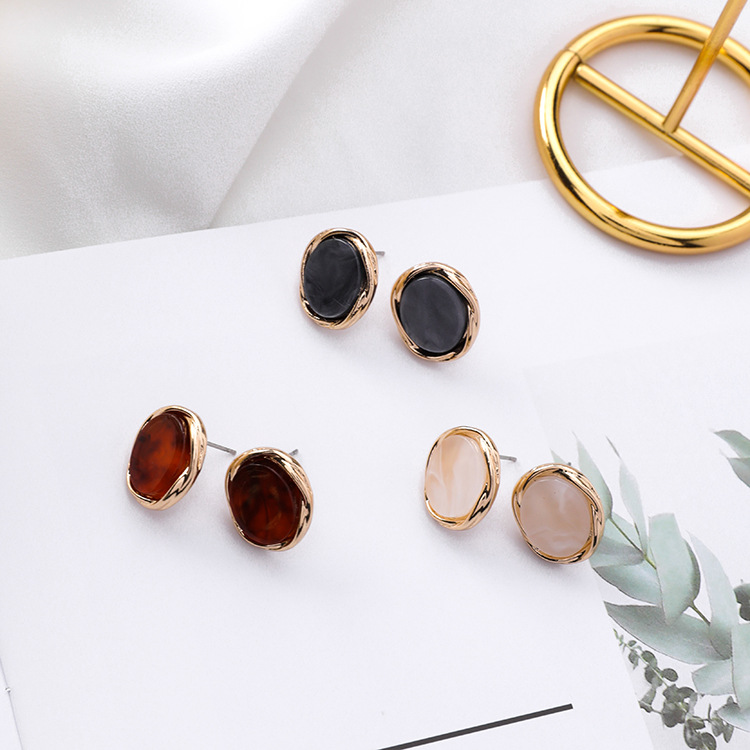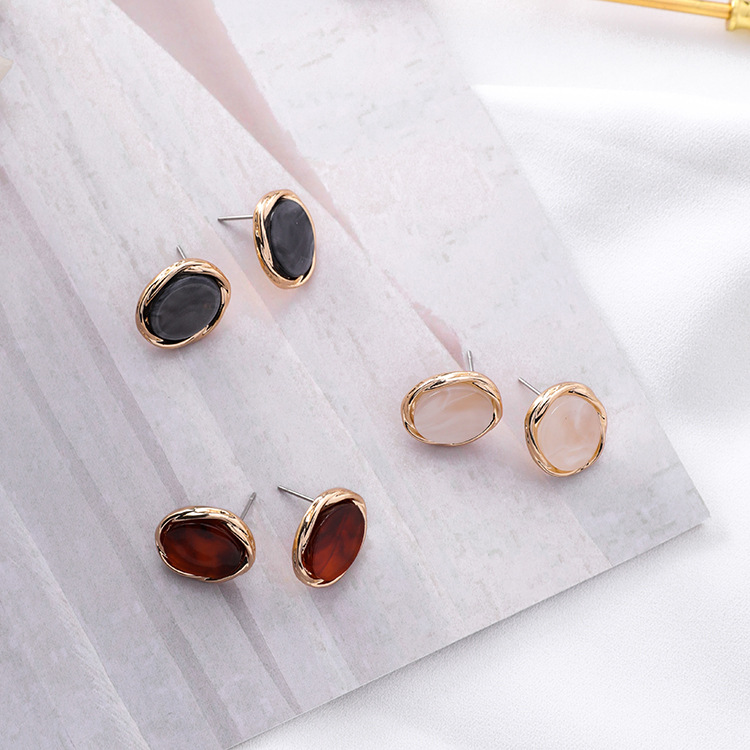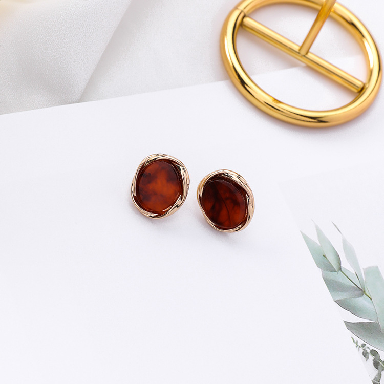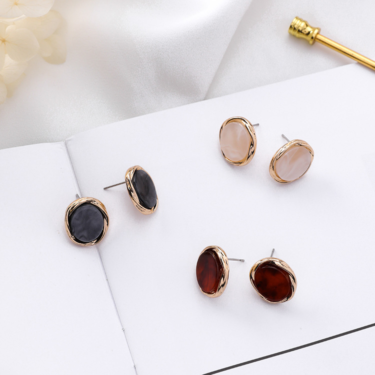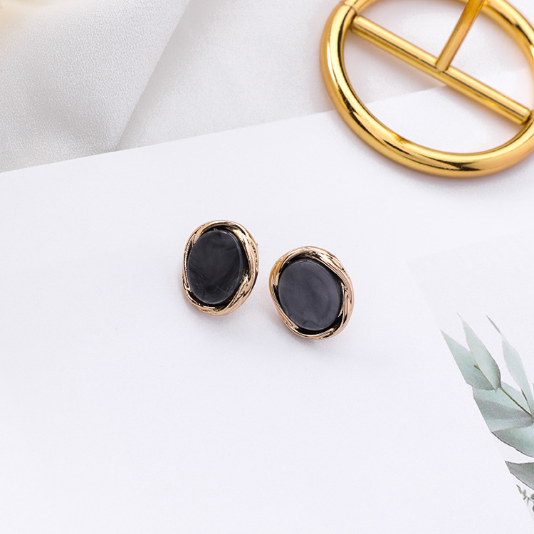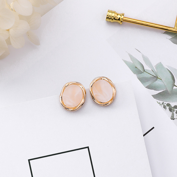 Vintage Marble Stud Earrings Acrylic Round Earrings