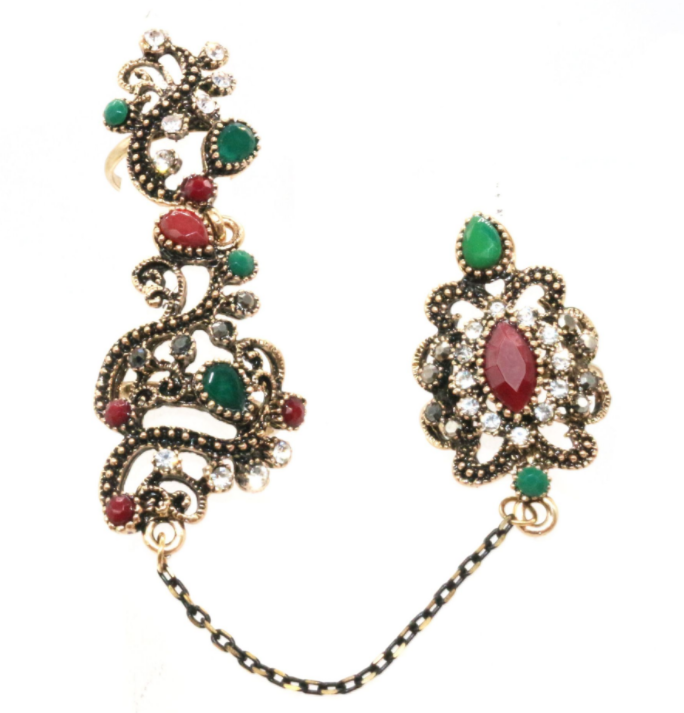 Promotion Turkish Double Finger Rings For Women Flower Ethnic Jewelry Multicolor Resin Vintage Pretty Exquisite Mid Ring Anillos