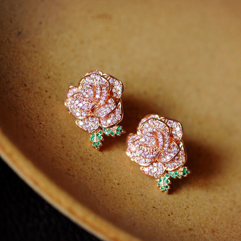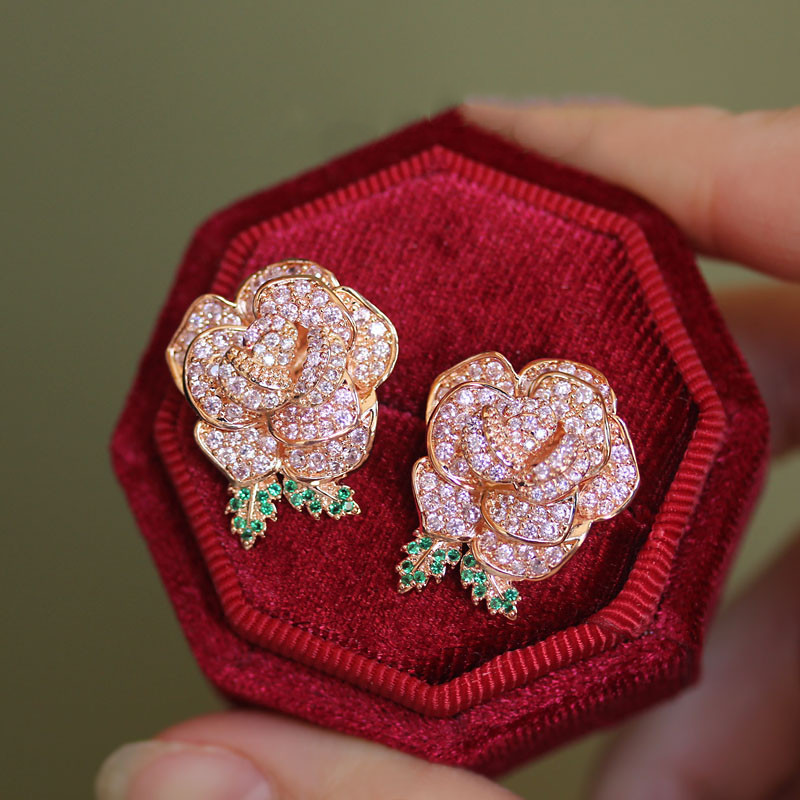 Material: environment-friendly copper gold plating, super color retention, S925 silver needle (electroplated coating), high-grade artificial pink diamond,