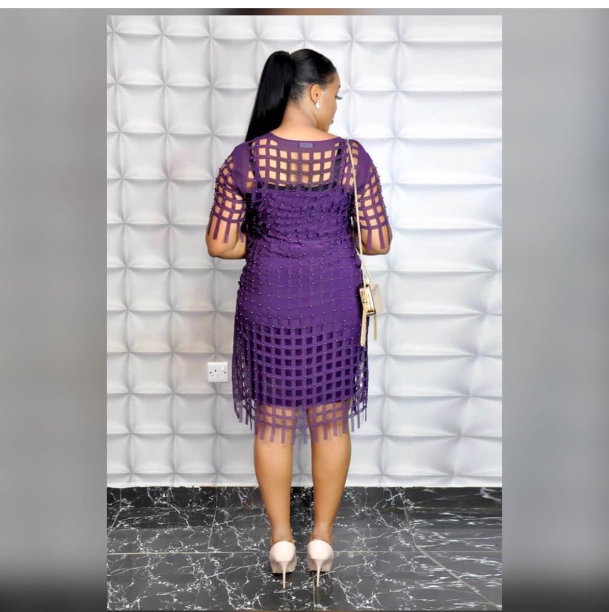 Chiffon Hollow Beaded Checkered Vest Skirt 2-Piece Set