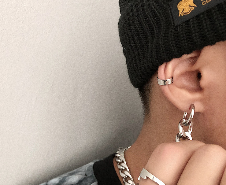 Titanium steel chain hoop earrings