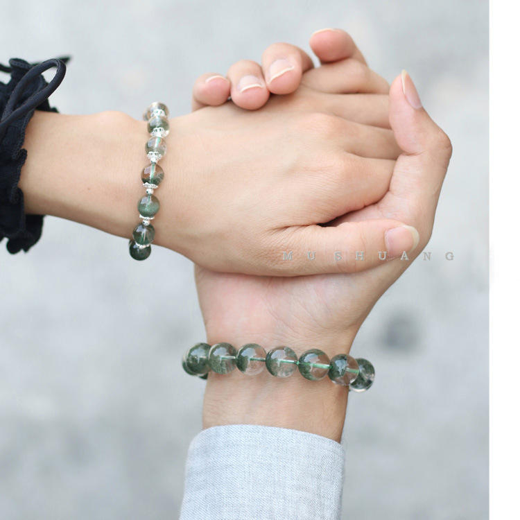 Material: Natural green ghost, blond crystal S925 sterling silverMatching stones: natural green ghost, blond crystalSize: Men's bead diameter is about 10mmFemale beads diameter about 8mm