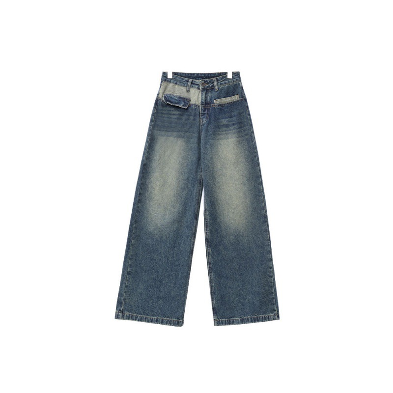 Product information: Thickness: medium Fabric name: denim Color: blue [good fabric]] Main fabric composition: Cotton Size: S,M,L,XL Pants type: loose type Style: wide leg pants Style: Korean style Craft: collage/stitching