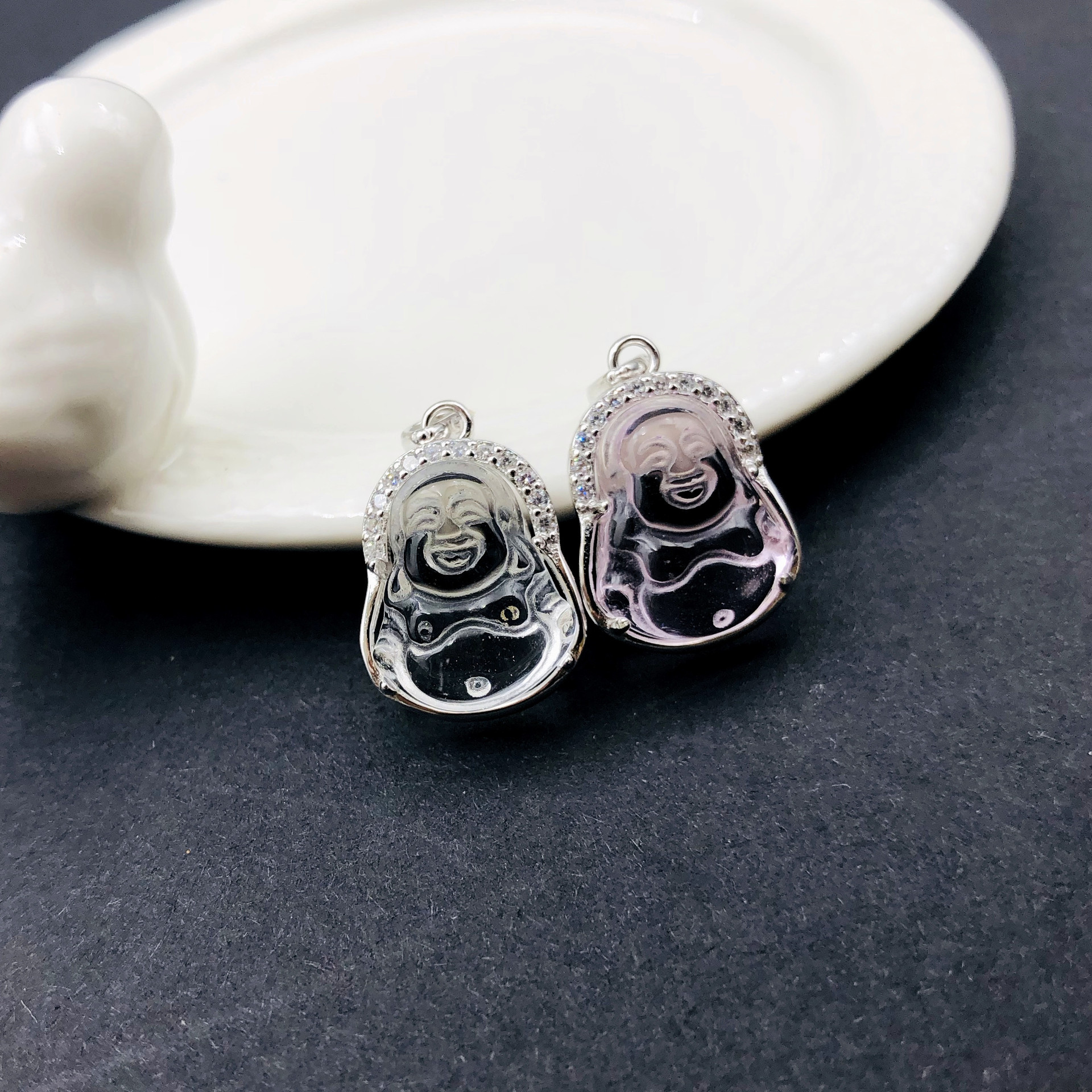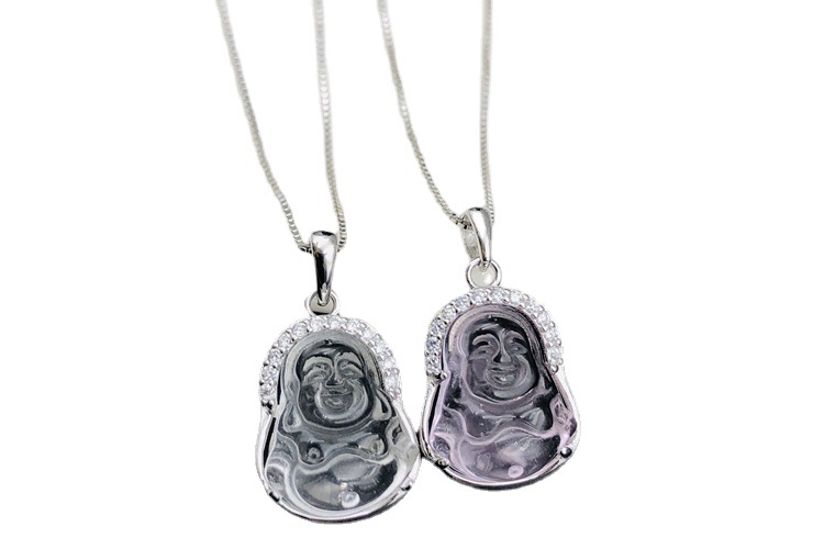 Color: White Crystal Buddha Necklace, Pink Crystal Buddha Necklace