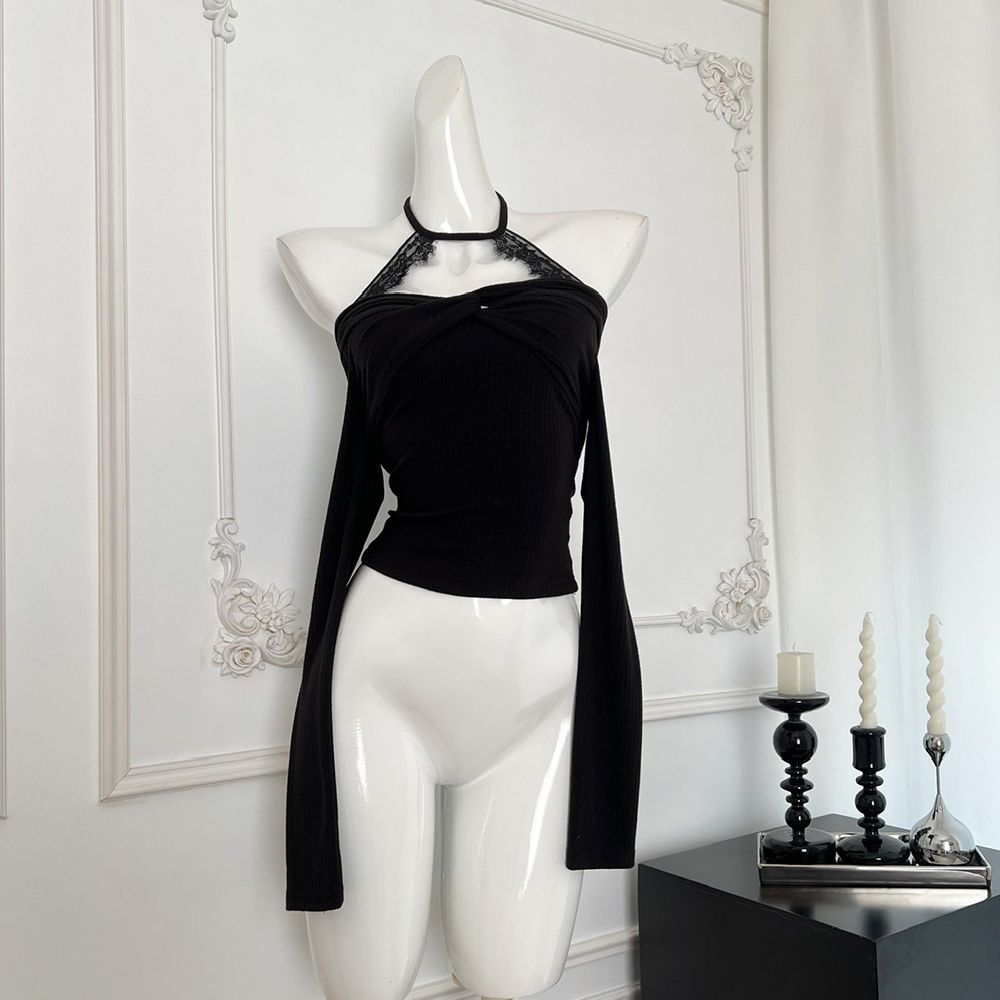 Product information: Pattern: solid color Fabric name: Polyester Color: purple, black Size: S,M,L,XL Style: slim fit Popular elements: lace Style: pullover Style: casual style Craft: collage/stitching