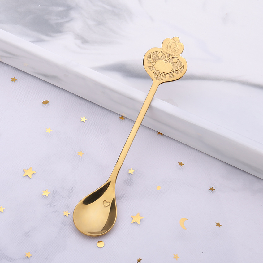 Product informationMaterial: Stainless steelColor: natural color/titanium gold/rose gold/colorful/black platingProcess: handle embossed/mirror polishingWeight: Coffee spoon 14g/fruit fork 10g