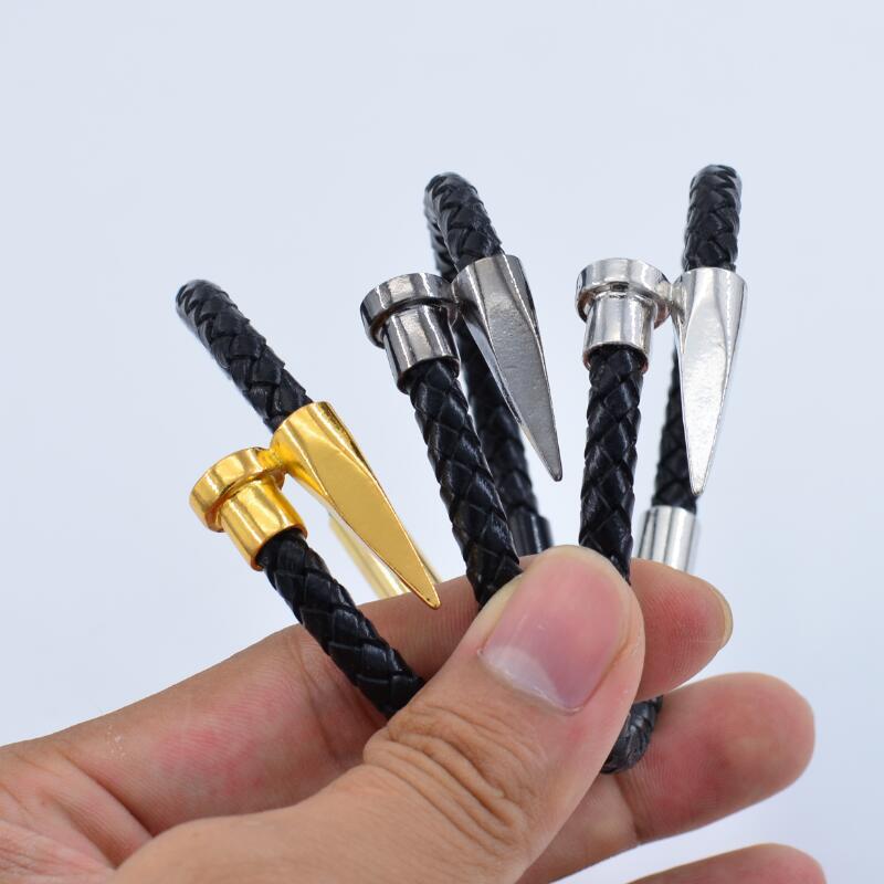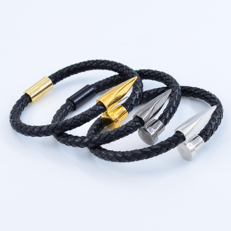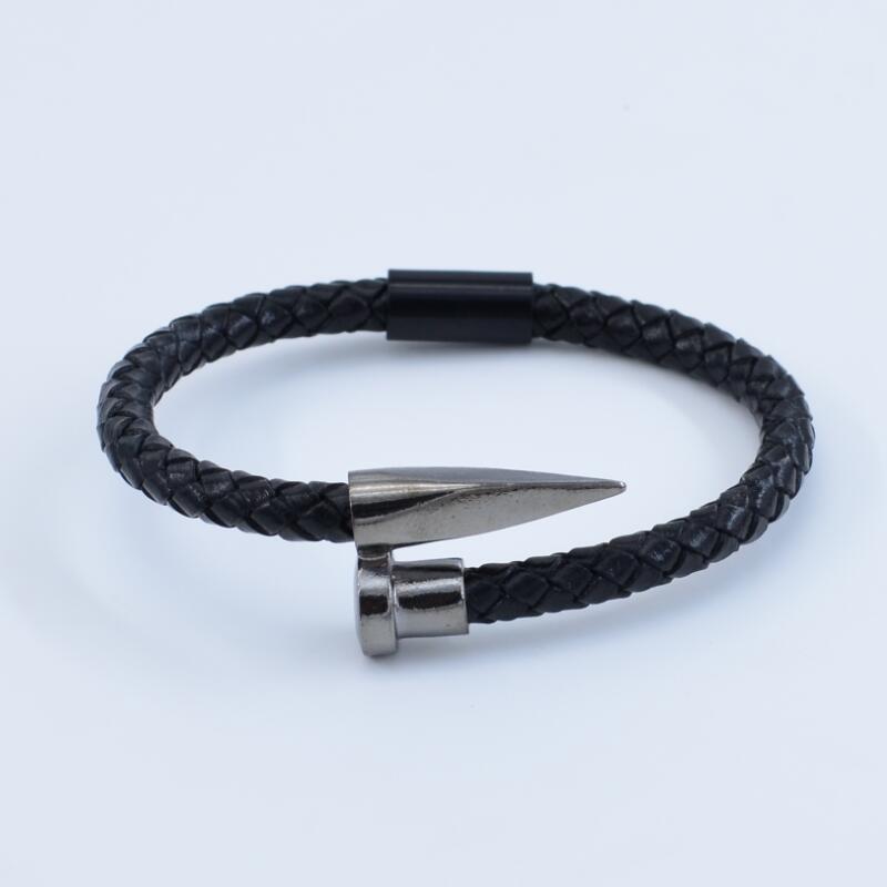 Leather Bracelet for Men Women Nail Design Stainless Steel Magnetic Clasp Braid Rope Chain Punk Gift for Father