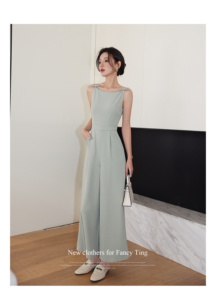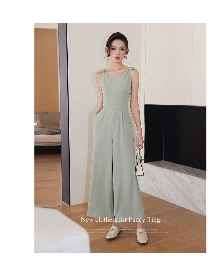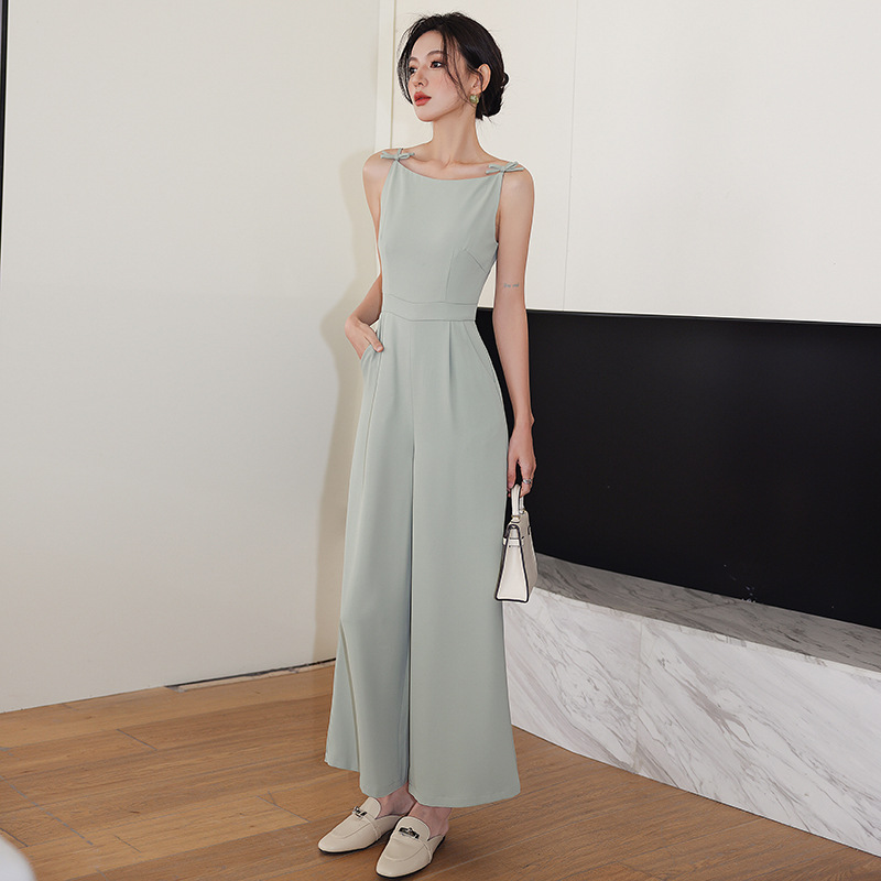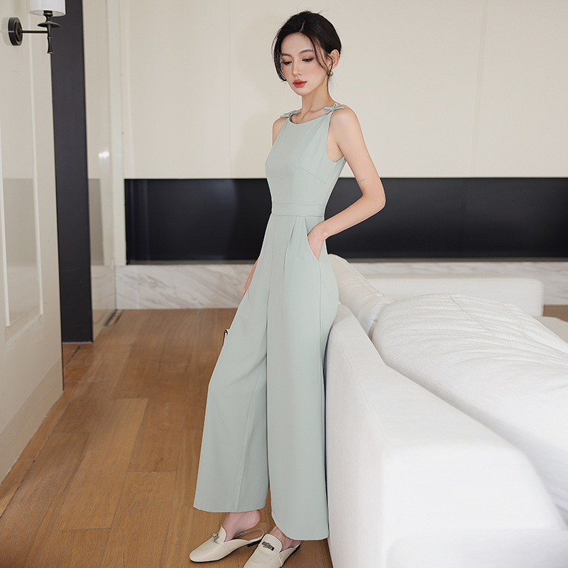 Retro Boat Neck Slim High Waist Jumpsuit Wide Leg Pants Roman Holiday Bow
