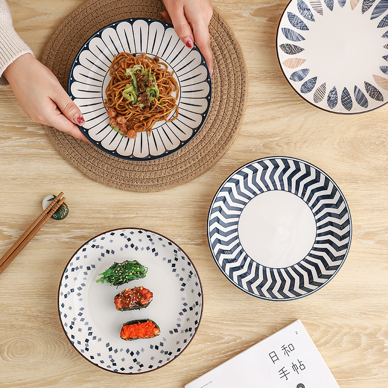 Specifications: [Peacock] 8-inch plate, [Stripe] 8-inch plate, [Brown Leaf] 8-inch plate, [Gypsophila] 8-inch plate