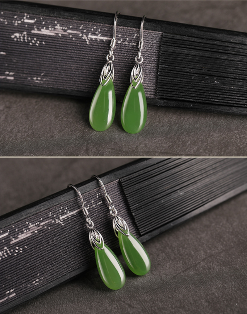 Material: JadeStyle: ethnic style, simple, retroStyle: Women'sShape: drop shapeMosaic material: 925 silver inlaid Hetian jadeSeries: Jasper EarringsImage: Long section