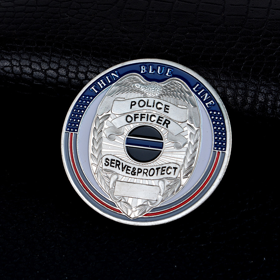[Product name]: American police commemorative coin[Material quality]: iron plated with silver【Size】:40*3mm【Weight】: about 30g[Packing]: Acrylic plastic shell + OPP sealed bag