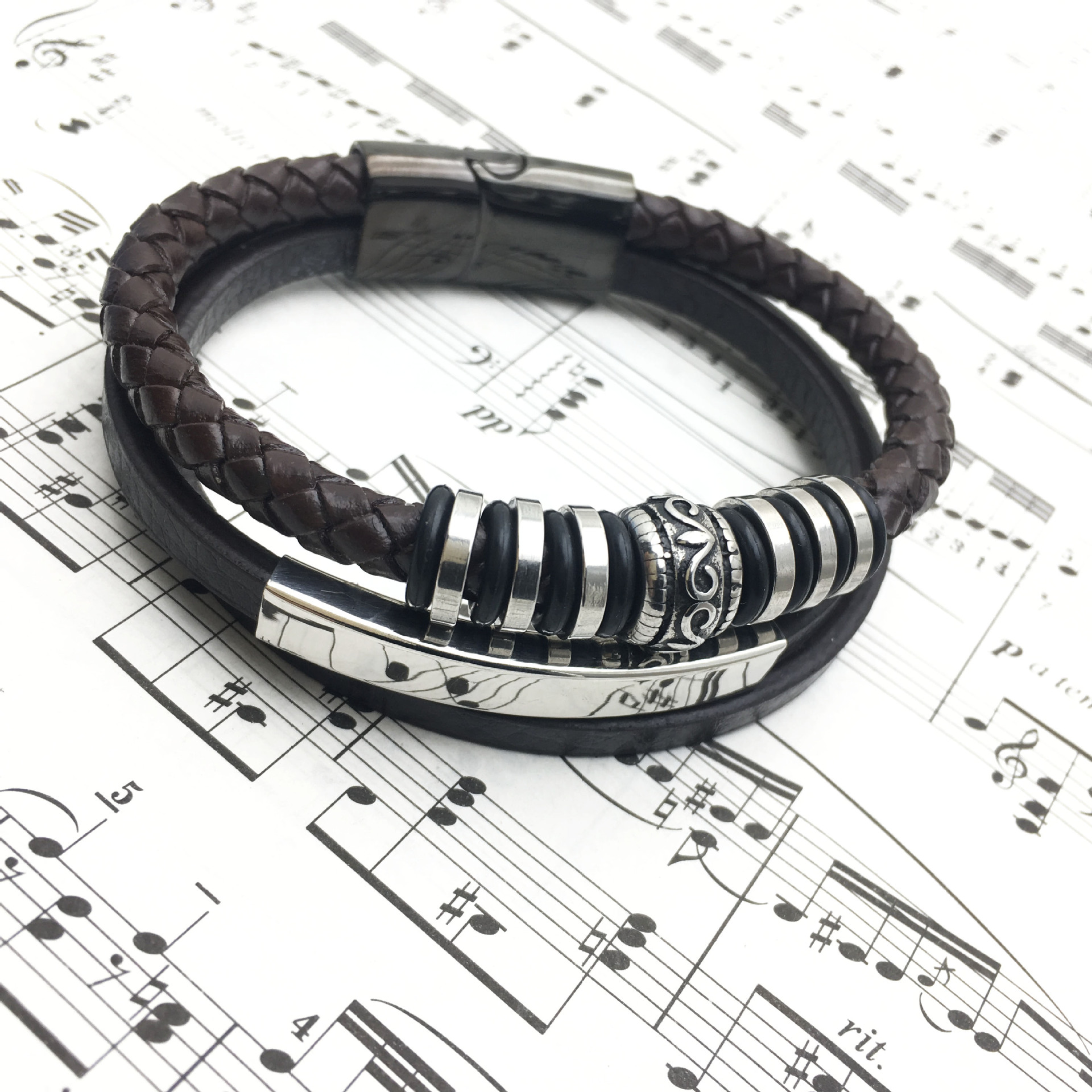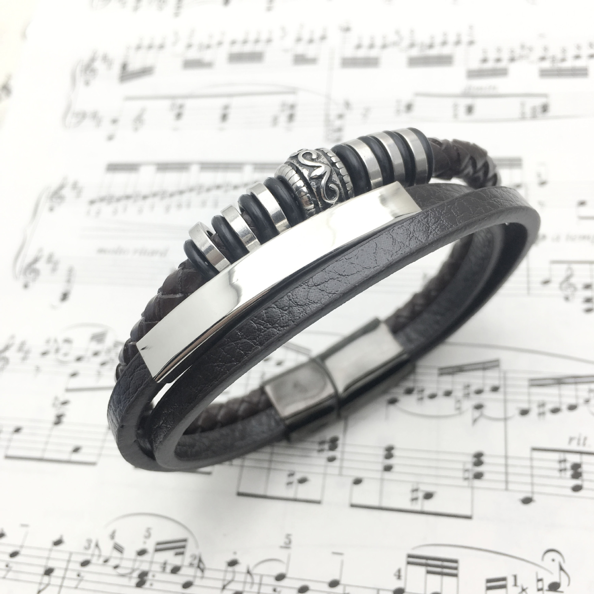 Style: Europe and AmericaMaterial; leatherType: bracelets, braceletsStyle: Men'sShape; geometryHealth function: anti-fatiguePackaging: Individually packed
