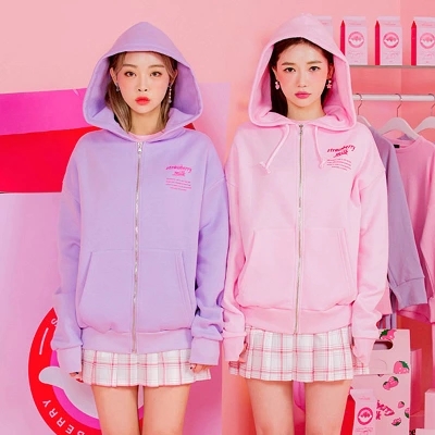 Strawberry Milk Cute Women's Casual Winter Long Sleeve Hoodies Sweatshirt Zipper Jacket Loose Style Pink & Lavendar