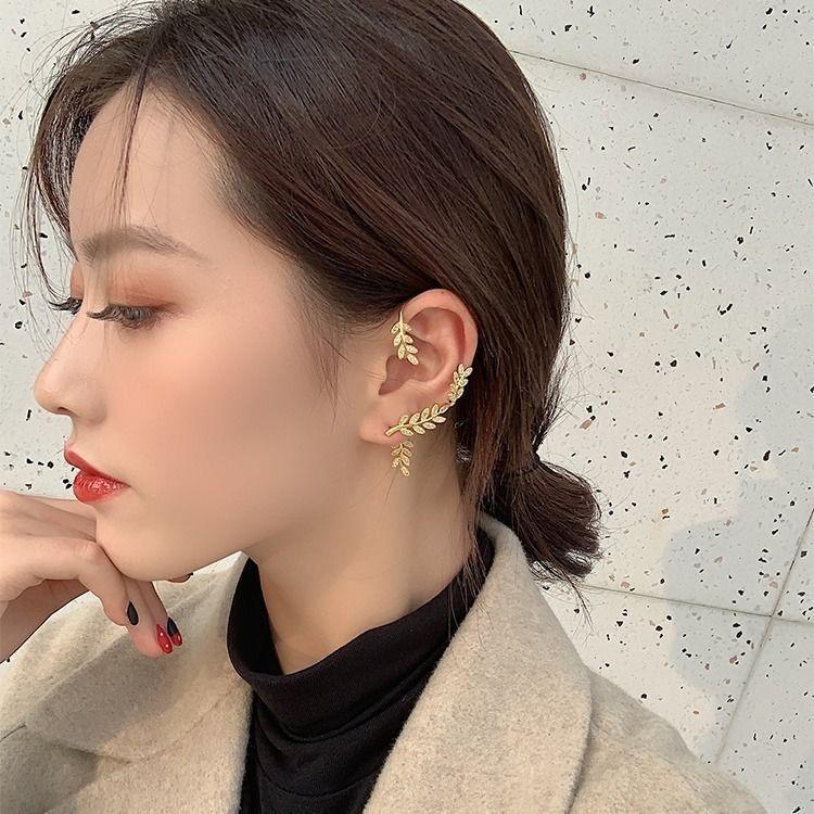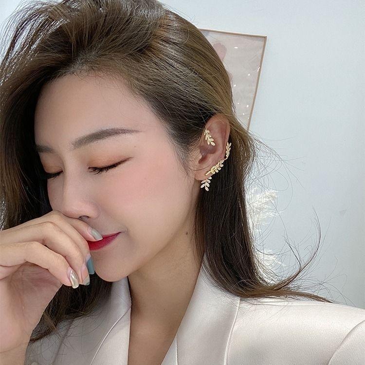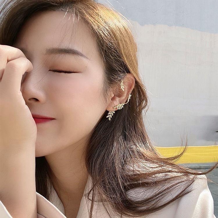 Silver Customized Super Immortal Diamond Integrated Leaf Elf Earrings, Korean Earrings, Ins Net Red Earrings