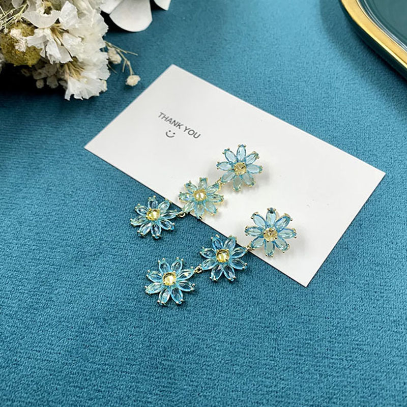 Sun Flower Earrings French Fringed Lake Blue Flowers