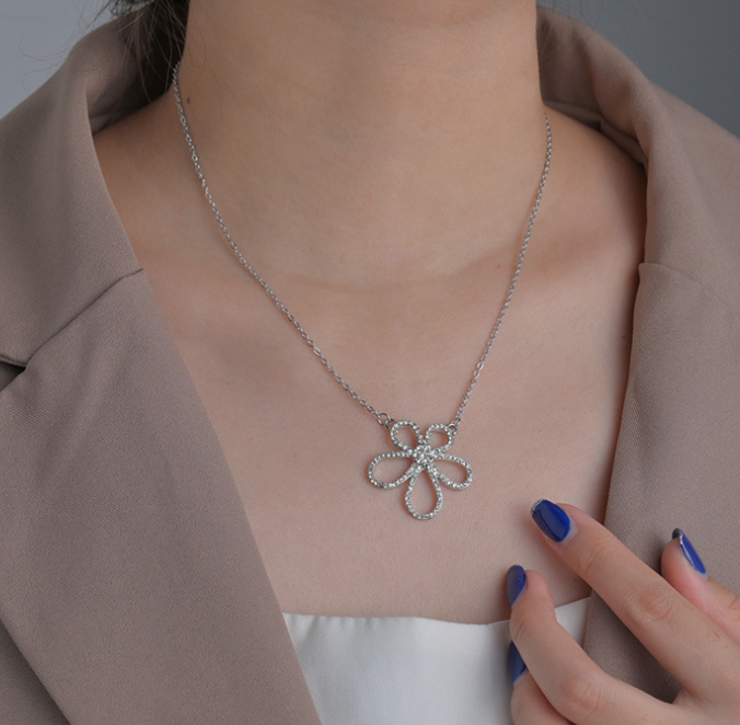 Exquisite Diamond Flower Pendant Necklace