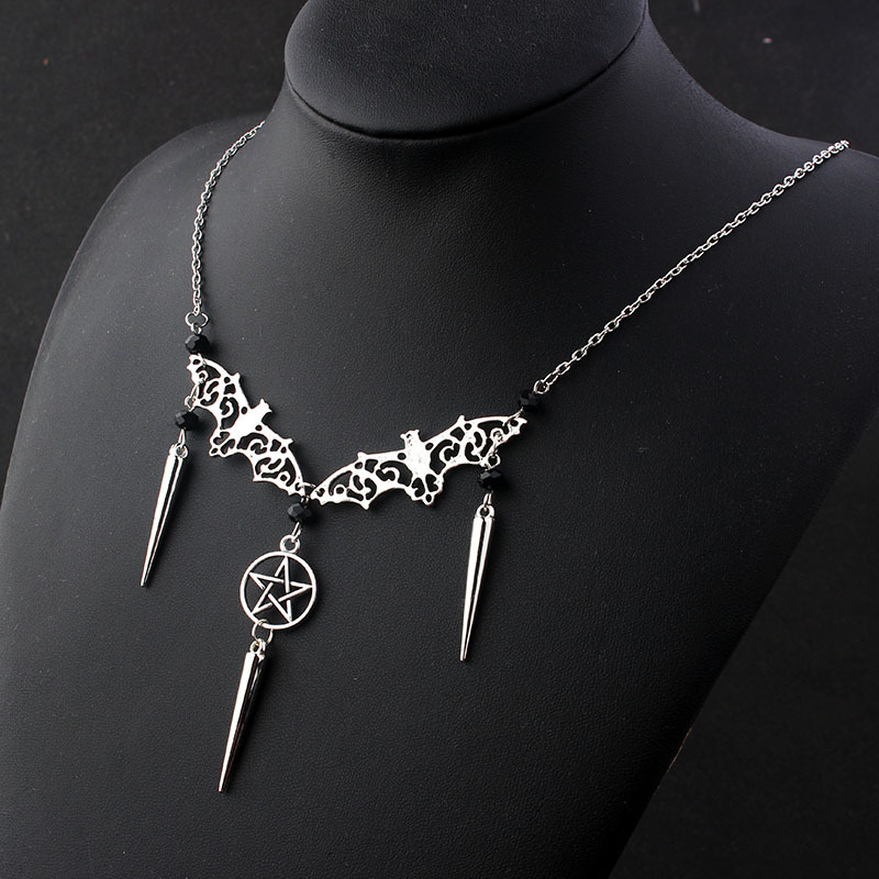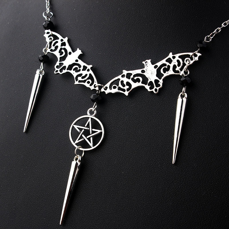 Overseas ebay explosion models European and American Gothic evil bat necklace magic pentagram sharp cone wizard pagan necklace