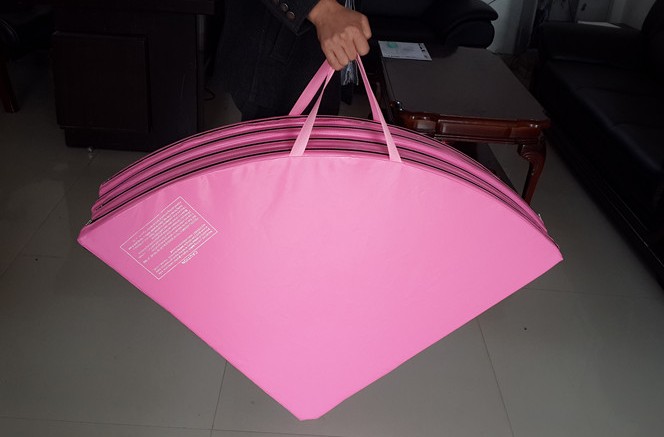 The round safety cushion can be folded into a quarter for storage.