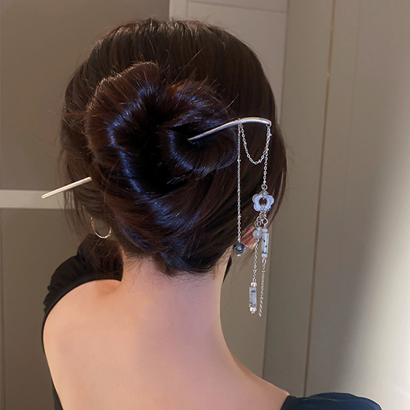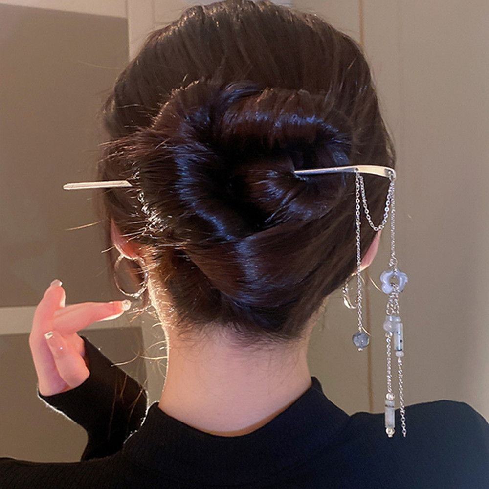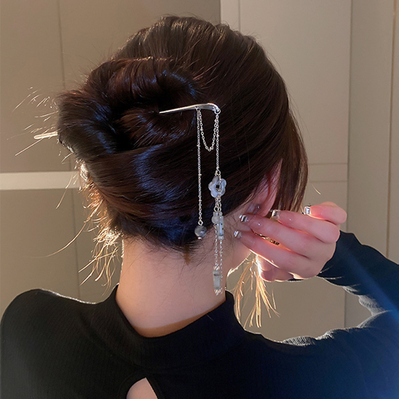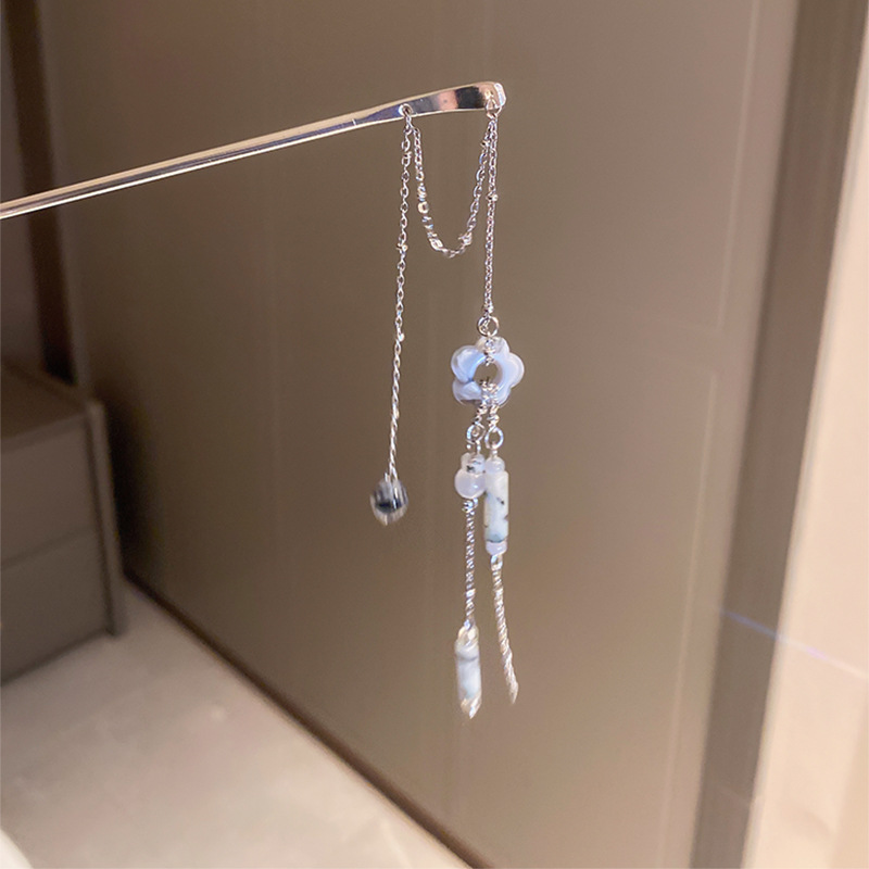 Color: EN0153 silver long tassel hairpin, FN3080 silver long tassel earrings