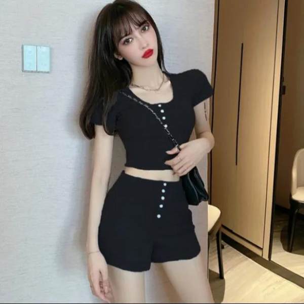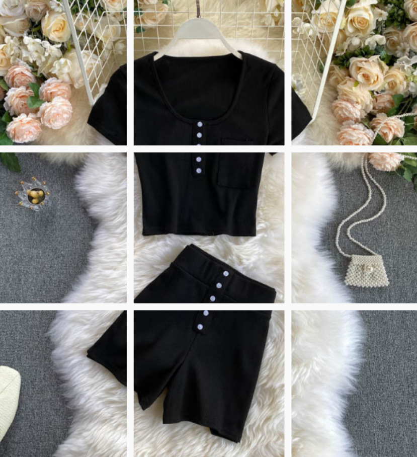 Product Details:Pattern: plainStyle: pants suitTop style: T-shirtMain fabric composition: cottonThe content of main fabric components: 30%-50%Color: gray, black