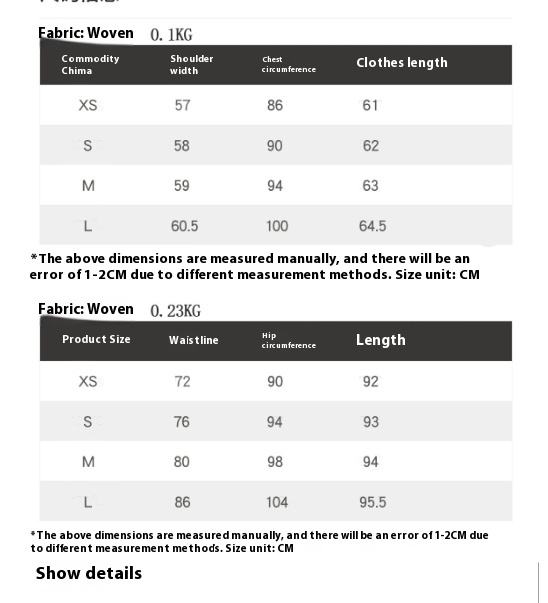 1. Asian sizes are 1 to 2 sizes smaller than European and American people. Choose the larger size if your size between two sizes. Please allow 2-3cm differences due to manual measurement. 2. Please check the size chart carefully before you buy the item, if you don't know how to choose size, please contact our customer service. 3.As you know, the different computers display colors differently, the color of the actual item may vary slightly from the following images.