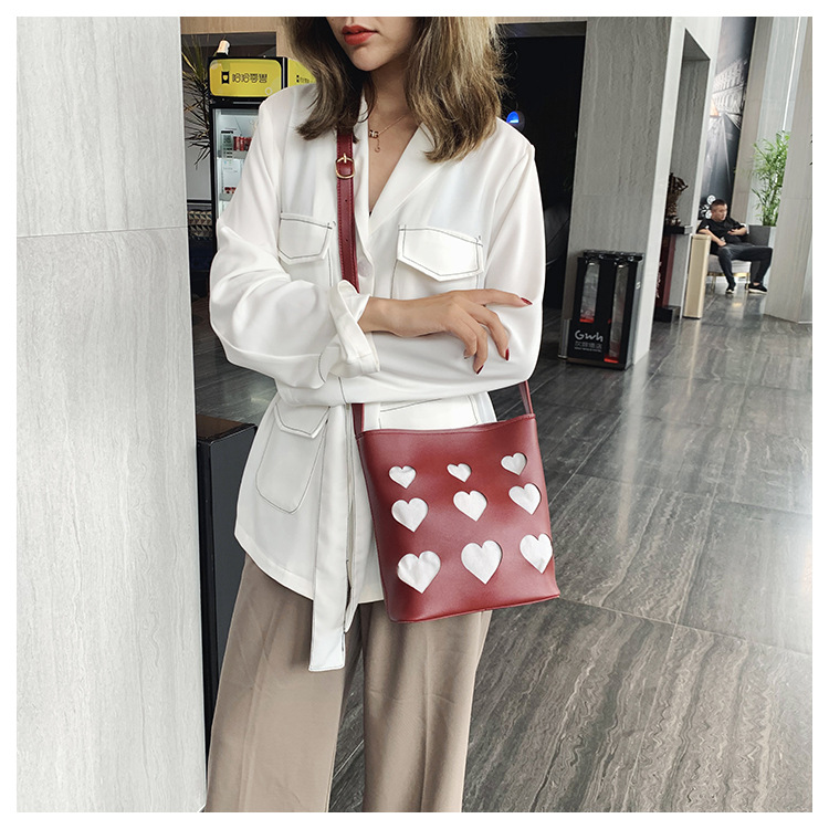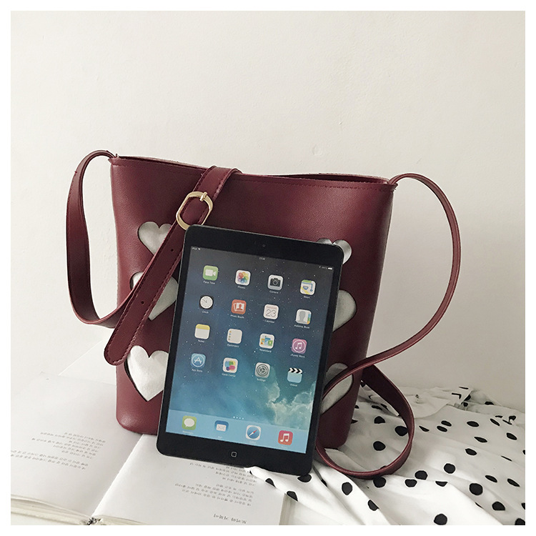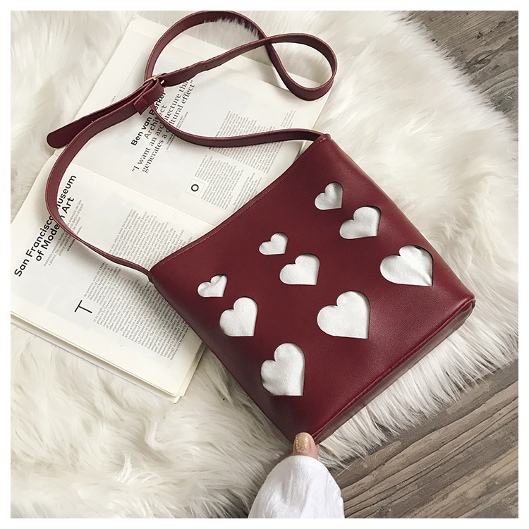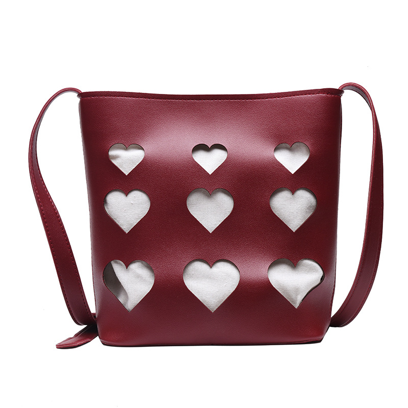 All-match hollow small peach heart bucket bag