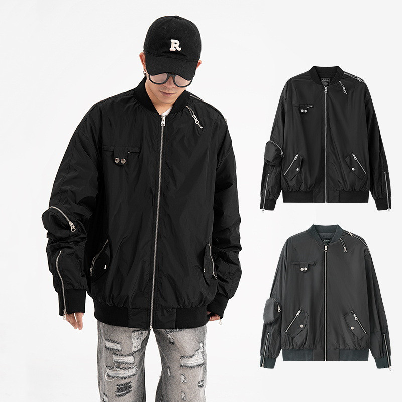 Product information: Pattern: solid color Pocket Style: zipper and pocket Color: black, gray Size: M,L,XL,XXL Fabric name: Polyester Style: High Street Craft: zipper