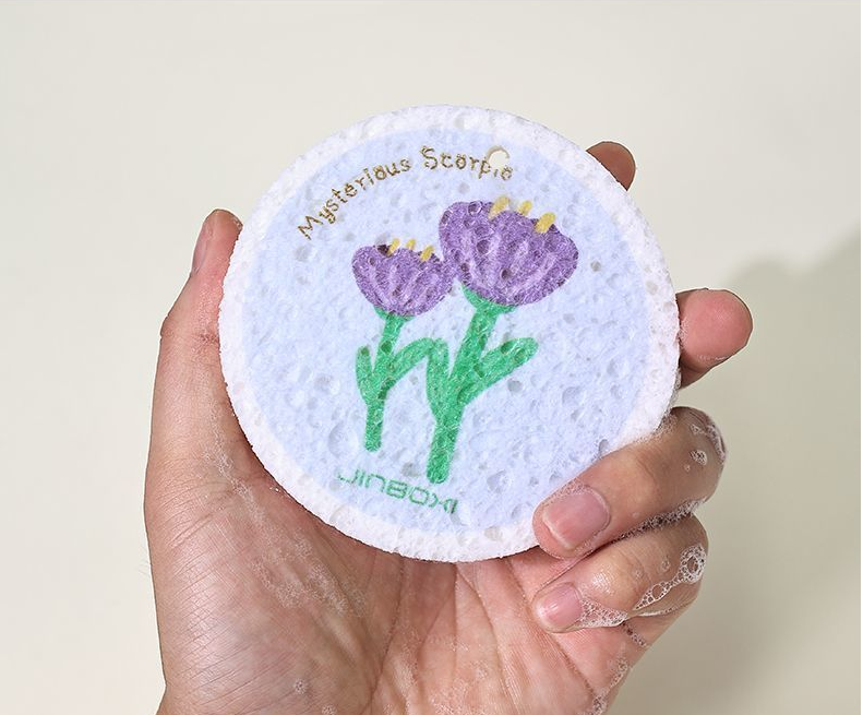 Wood Pulp Cotton Dishwashing Wipe Cartoon Flower Wood Pulp Sponge